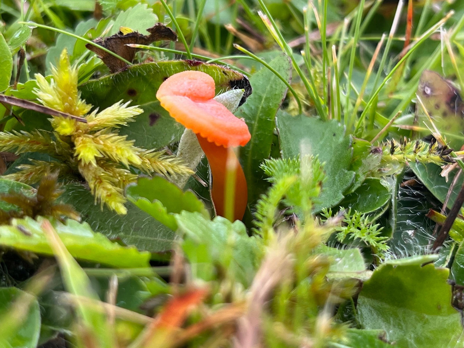 2. Heute fand ich gleich in der Nähe die erste winzige Hygrocybe cantharellus.