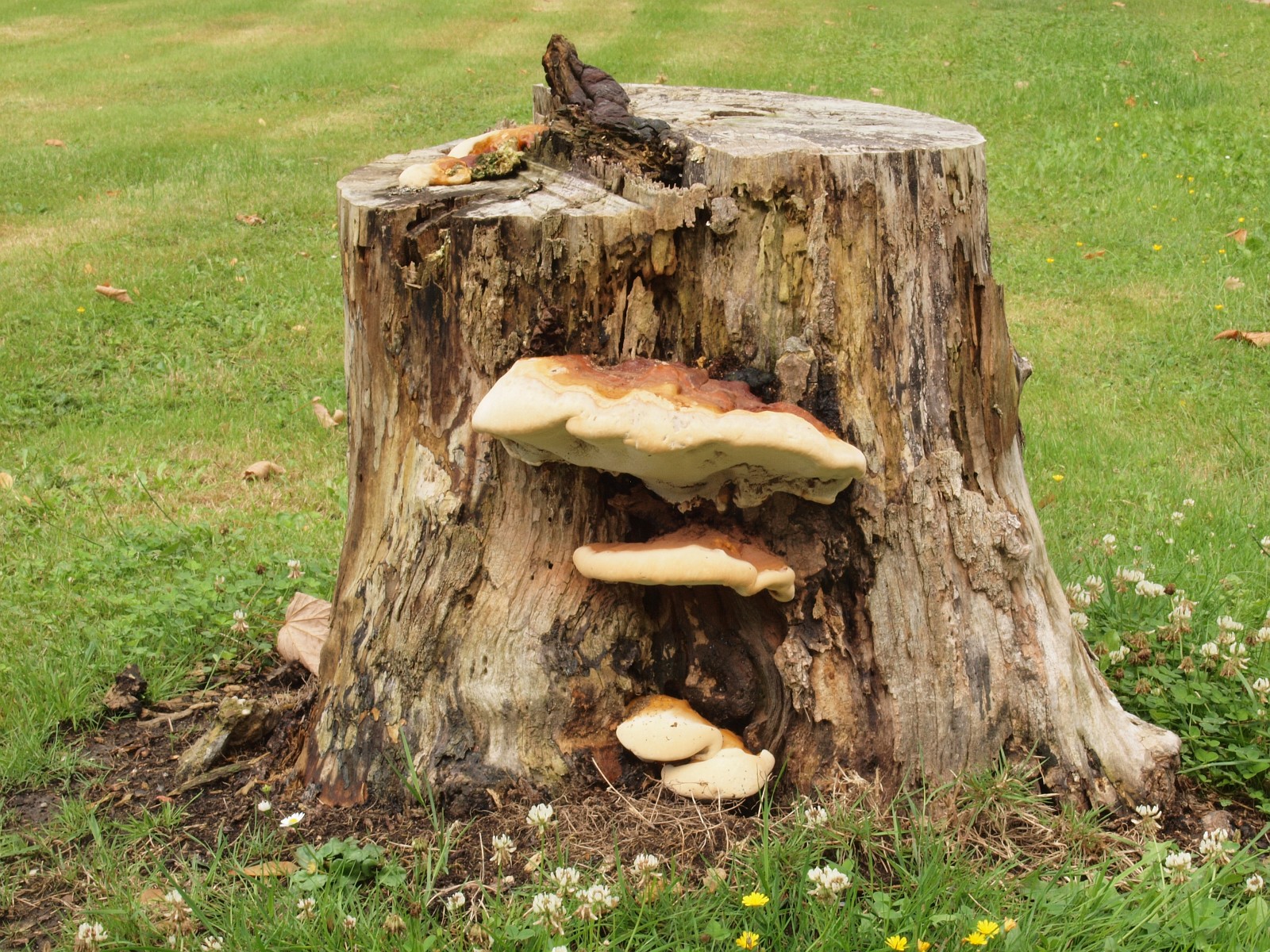 An einem Stumpf wuchsen hübsche Exemplare vom Harzigen Lackporling (Ganoderma resinaceum)