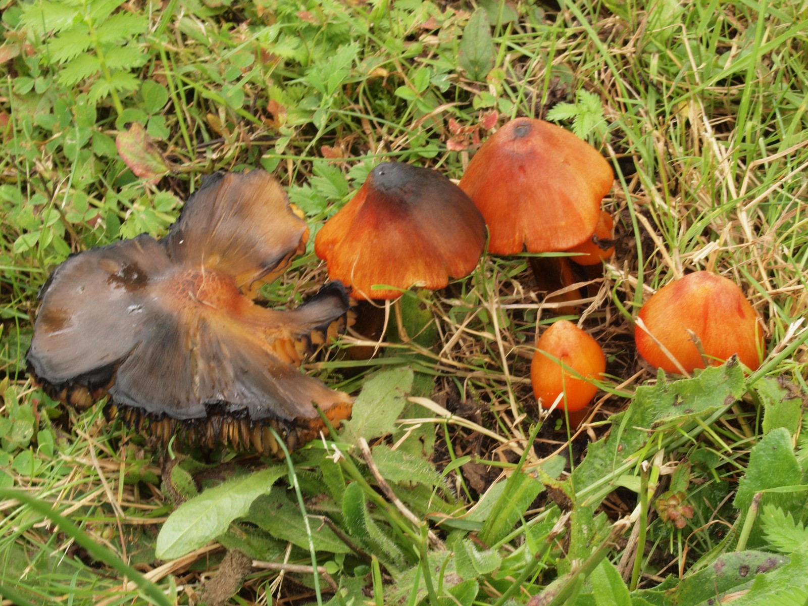 Reichlich erschien schon der Stattlicher Kegel-Saftling (Hygrocybe conica f. pseudoconica)