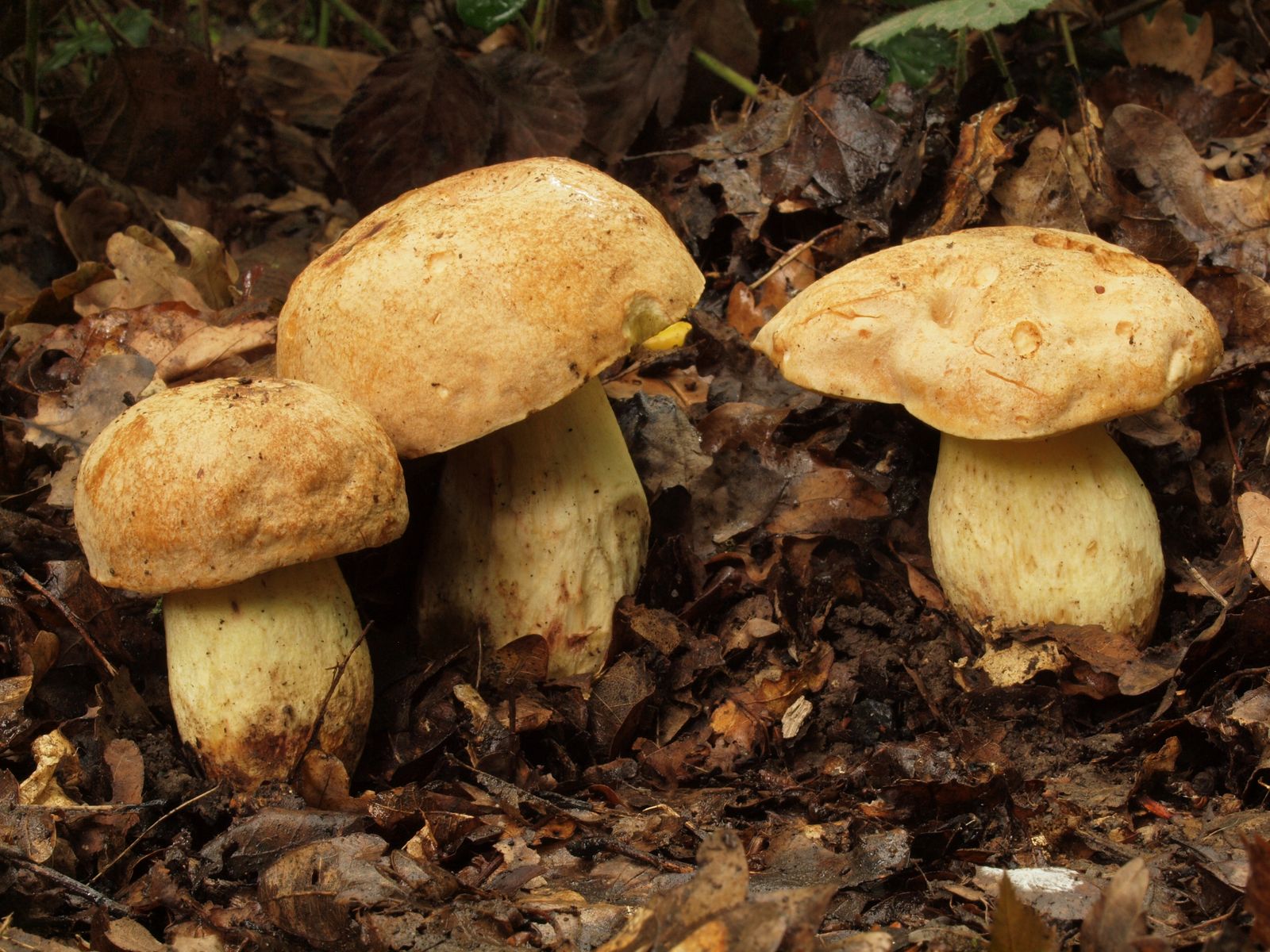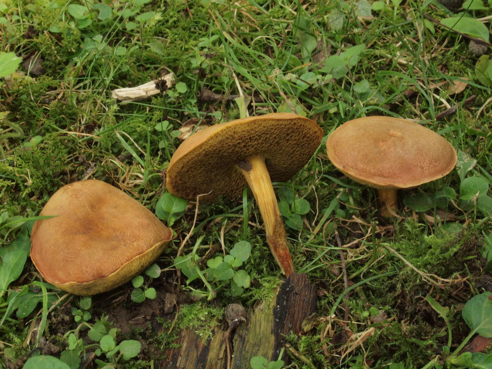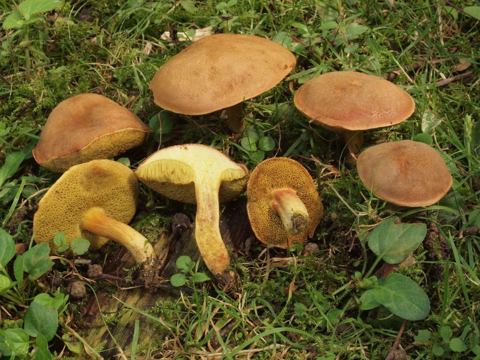 Viele Filzröhrlinge waren schon von Schimmel befallen, aber in einer Ecke standen unversehrte Exemplare im Rasen unter einer Eiche