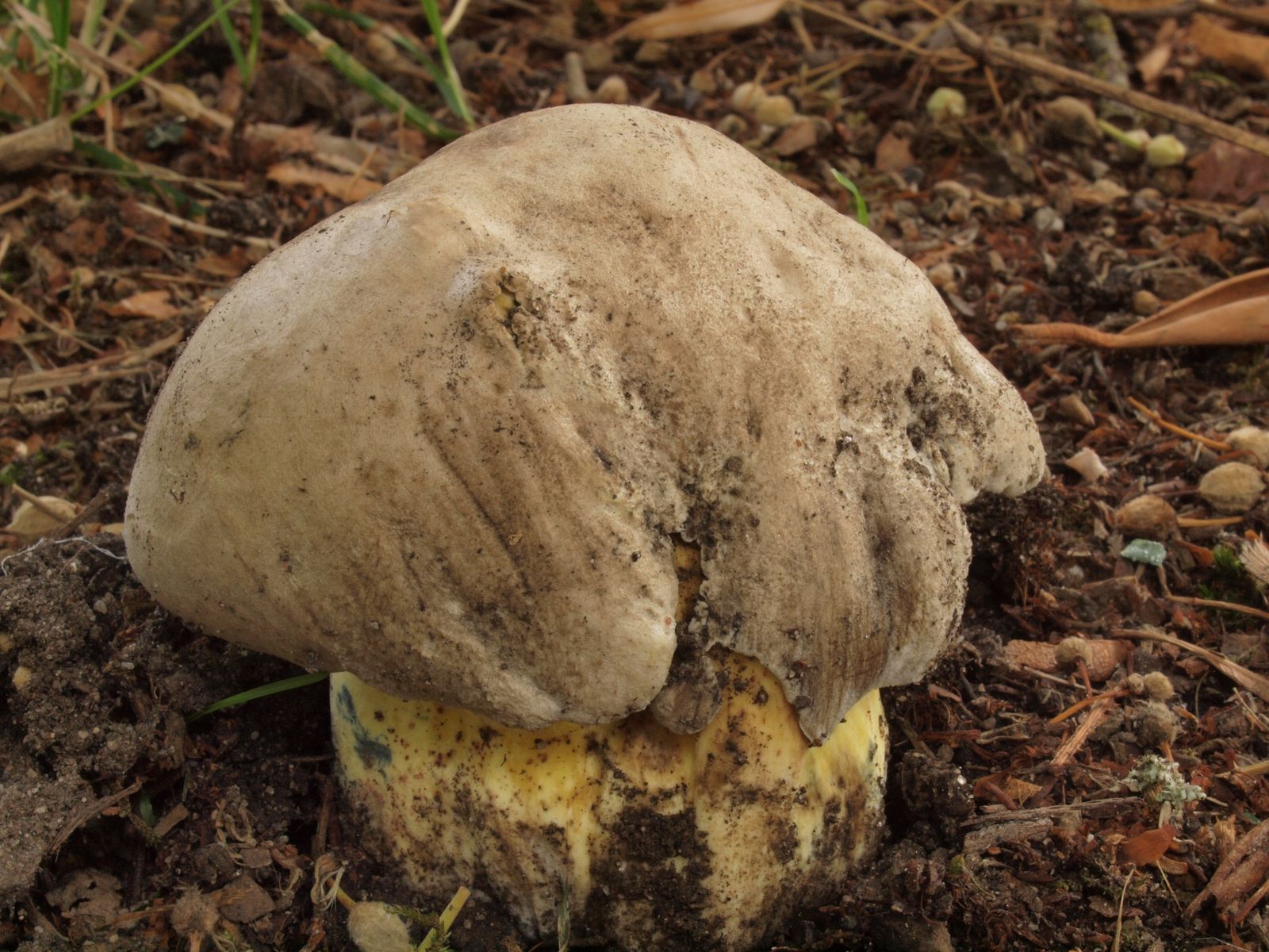 Wurzelnder Bitteröhrling (Caloboletus radicans) meistens noch klein