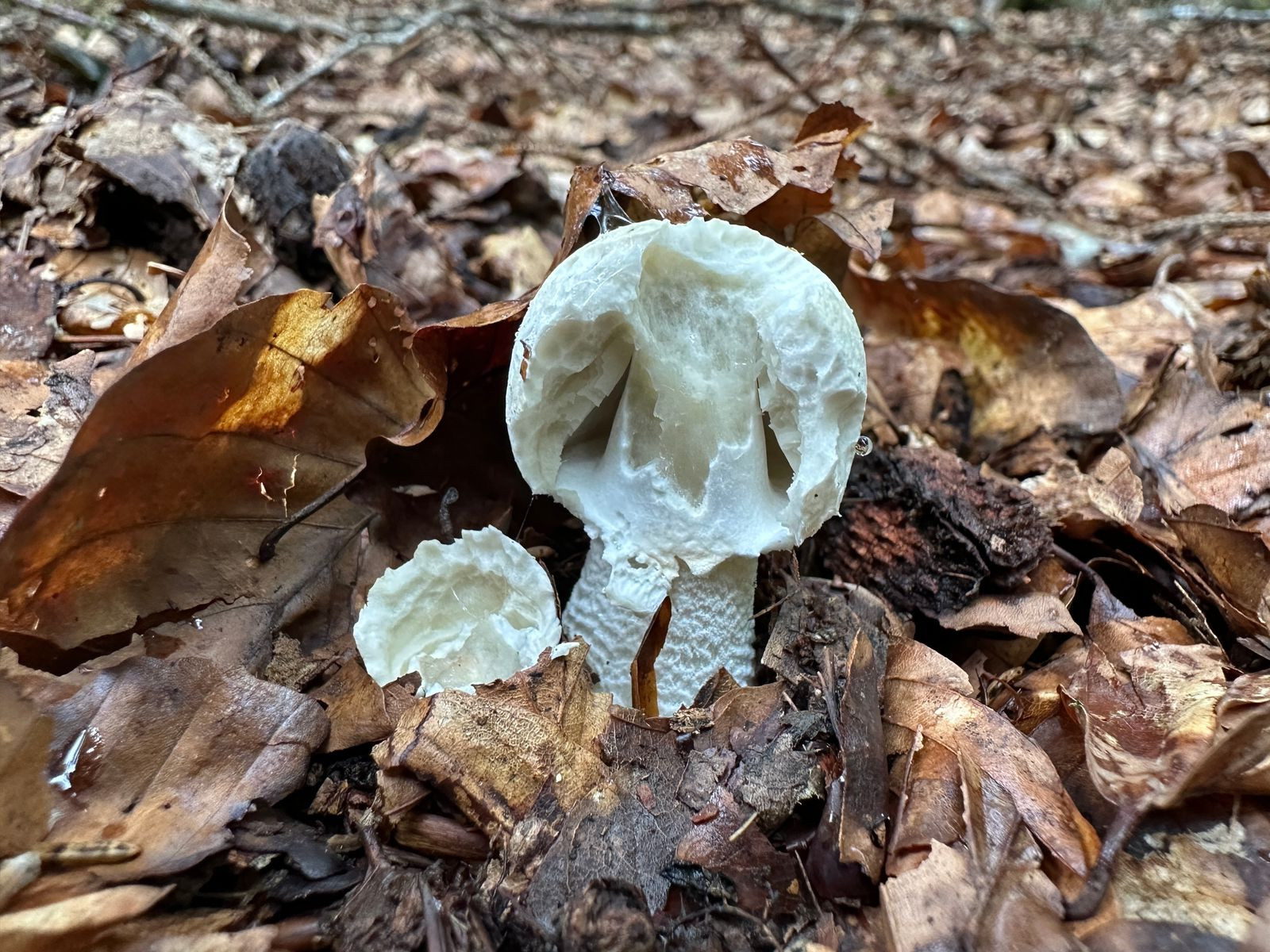 Wenn ich nach weißen Amanitas suche, die in kalkreichen Laubwäldern vorkommen, landet man zwangsläufig bei Amanita phalloides var. alba, aber dafür finde ich sie fast zu klein. Ich habe schon A. phalloides an anderen Stellen gefunden und die werden nach meiner Erfahrung in etwa gleich groß wie der Fliegenpilz.