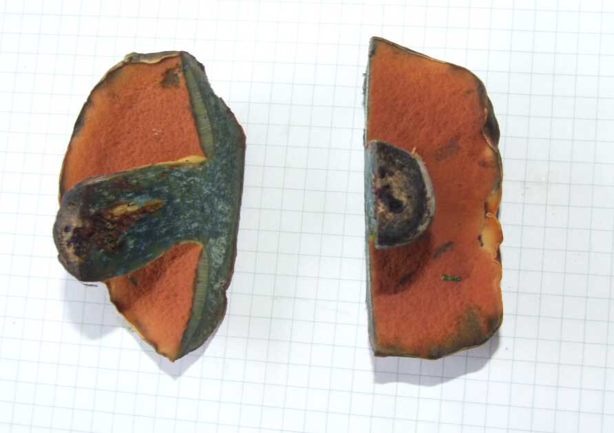Heute habe ich zwei Pilze mitgenommen, die beim Schnitt sich stark verfärben.