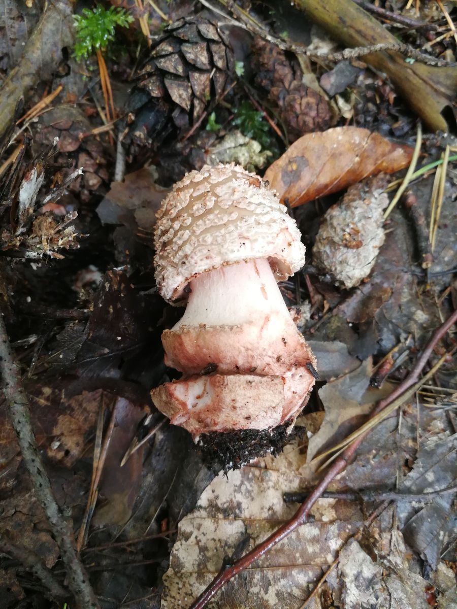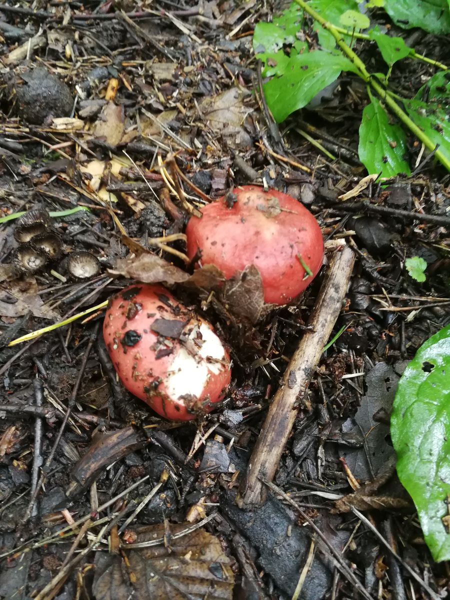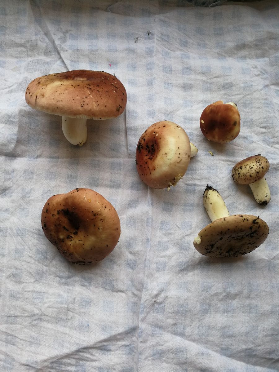 5. Da mild schmecken und schön schinkenrot, spitig zulaufendem Stiel und zurückgezogener Huthaut sind wir beim Speisetäubling