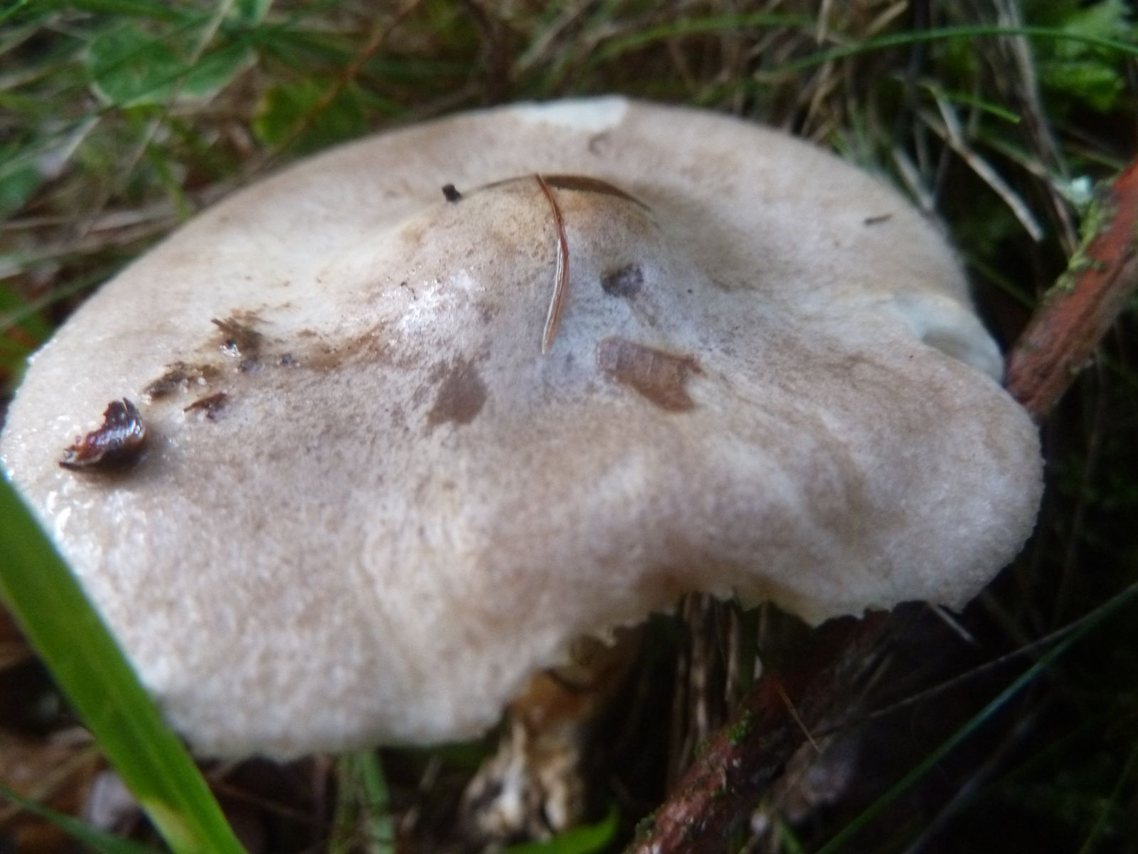 In einiger Entfernung habe ich noch einen wesentlich größeren Pilz mit dem gleichen Geruch gefunden, der aber die besten Zeiten klar hinter sich hat. Dieses Exemplar ist mehr als doppelt so groß (über 10 cm Hutdurchmesser) und hat die gleiche markante glockige Hutform. Ich bin mir aber nicht sicher, ob das die selbe Art ist (beginnende Zersetzung).