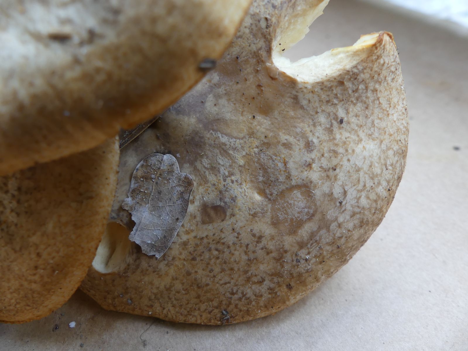 Selbst bei Winkler/Keller gibt es kein Foto, nur eine Beschreibung - die ist immerhin etwas aussagekräftiger. Markant ist bei allen bisher von mir gefundenen Exemplaren die gelb bis orangebraune Stielbasis. Die namensgebenden Borsten sind vor allem am Hutrand sichtbar, was aber bei feuchten Fruchtkörpern nicht so deutlich wahrnehmbar ist.