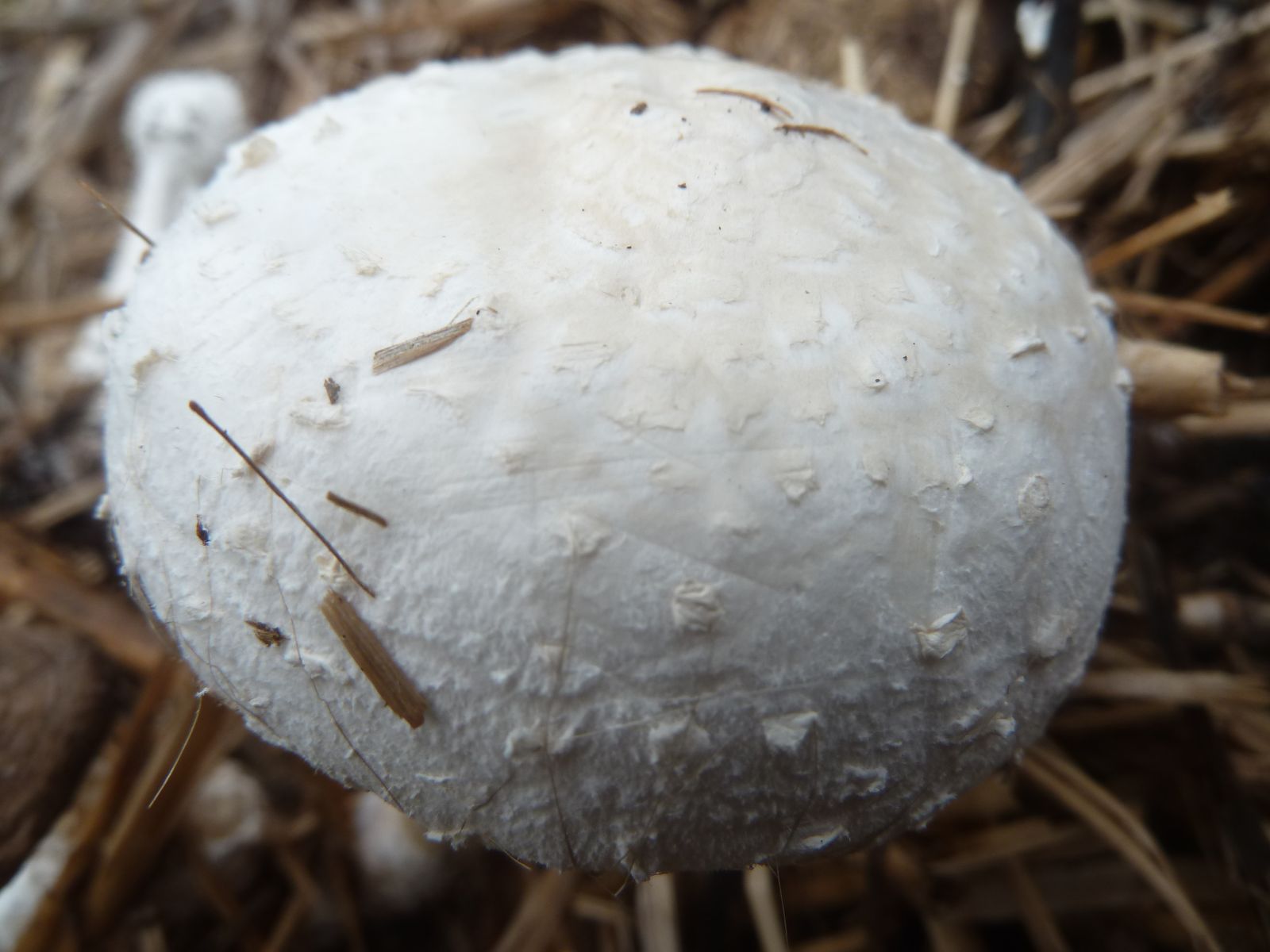 Die Regenpause am Nachmittag habe ich für einen Waldspaziergang genutzt. Während es innerhalb des Waldes keine wirklich interessanten Funde gab, konnte ich auf dem Rückweg auf einem Haufen mit Stallmist weiße Pilze entdecken. Ein Abgleich hat mich zu Leucocoprinus cretaceus geführt, passt das?