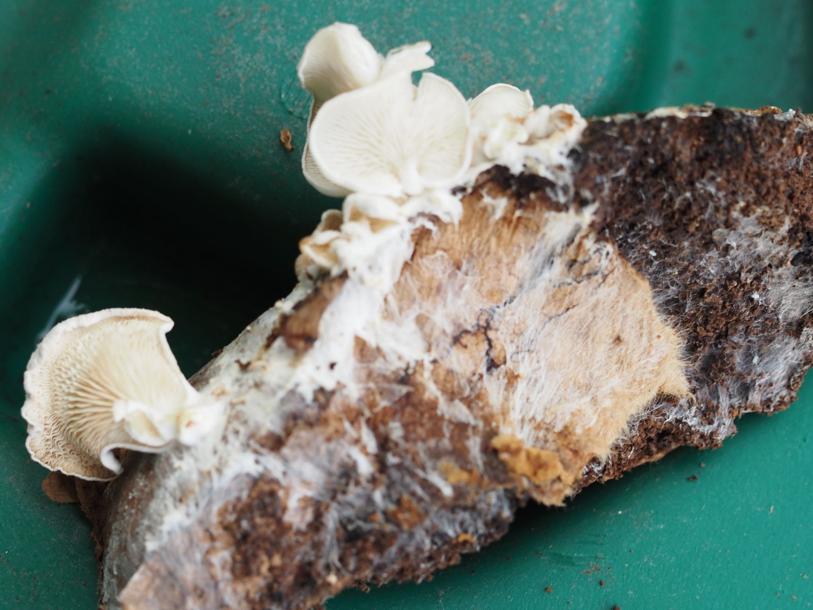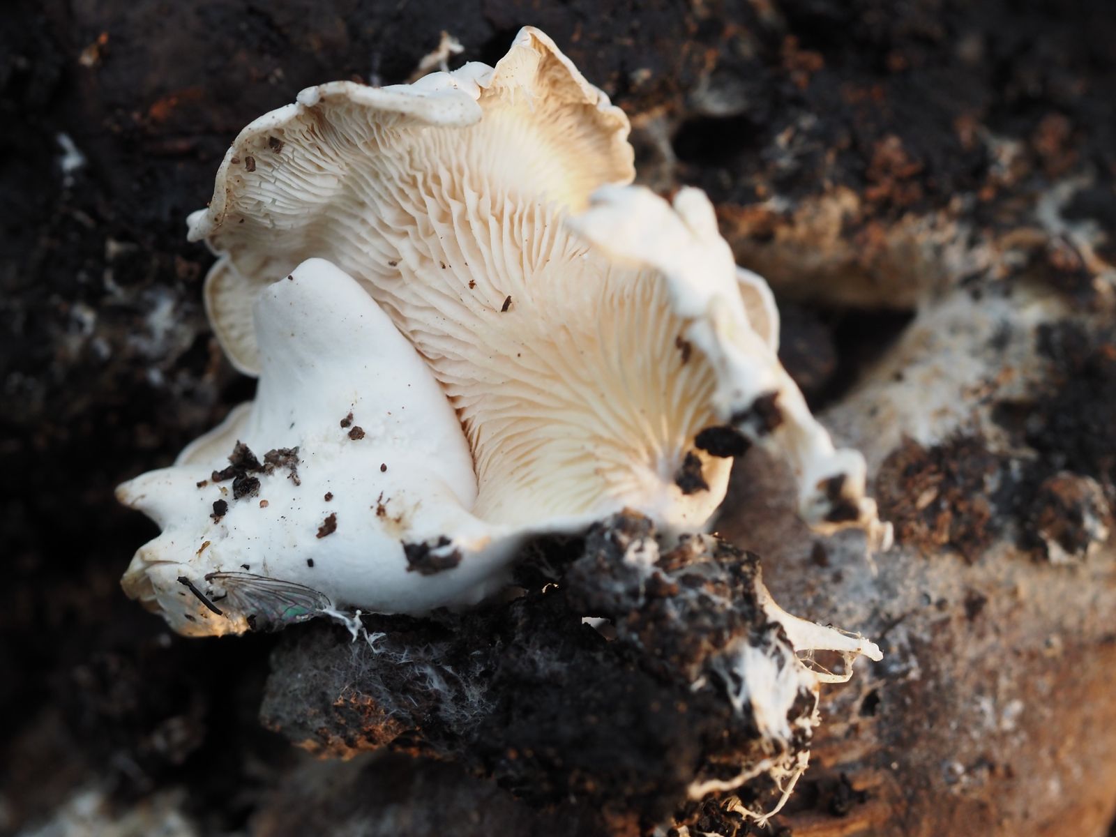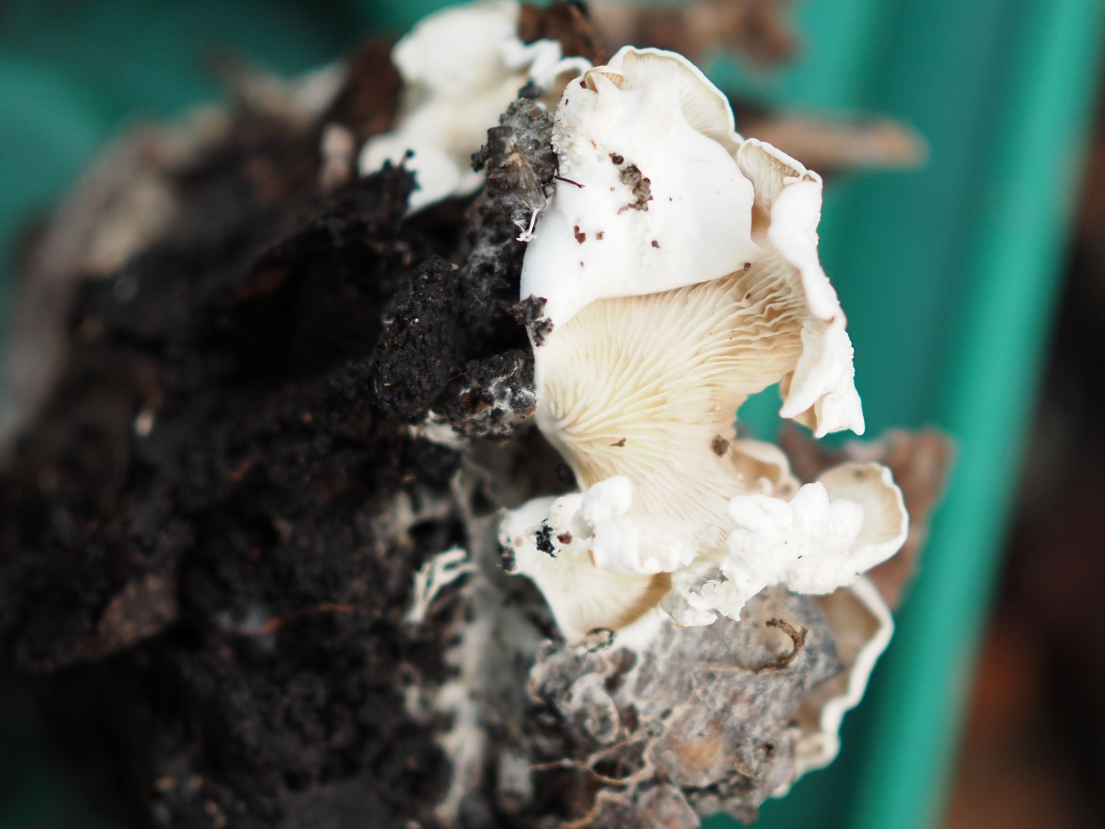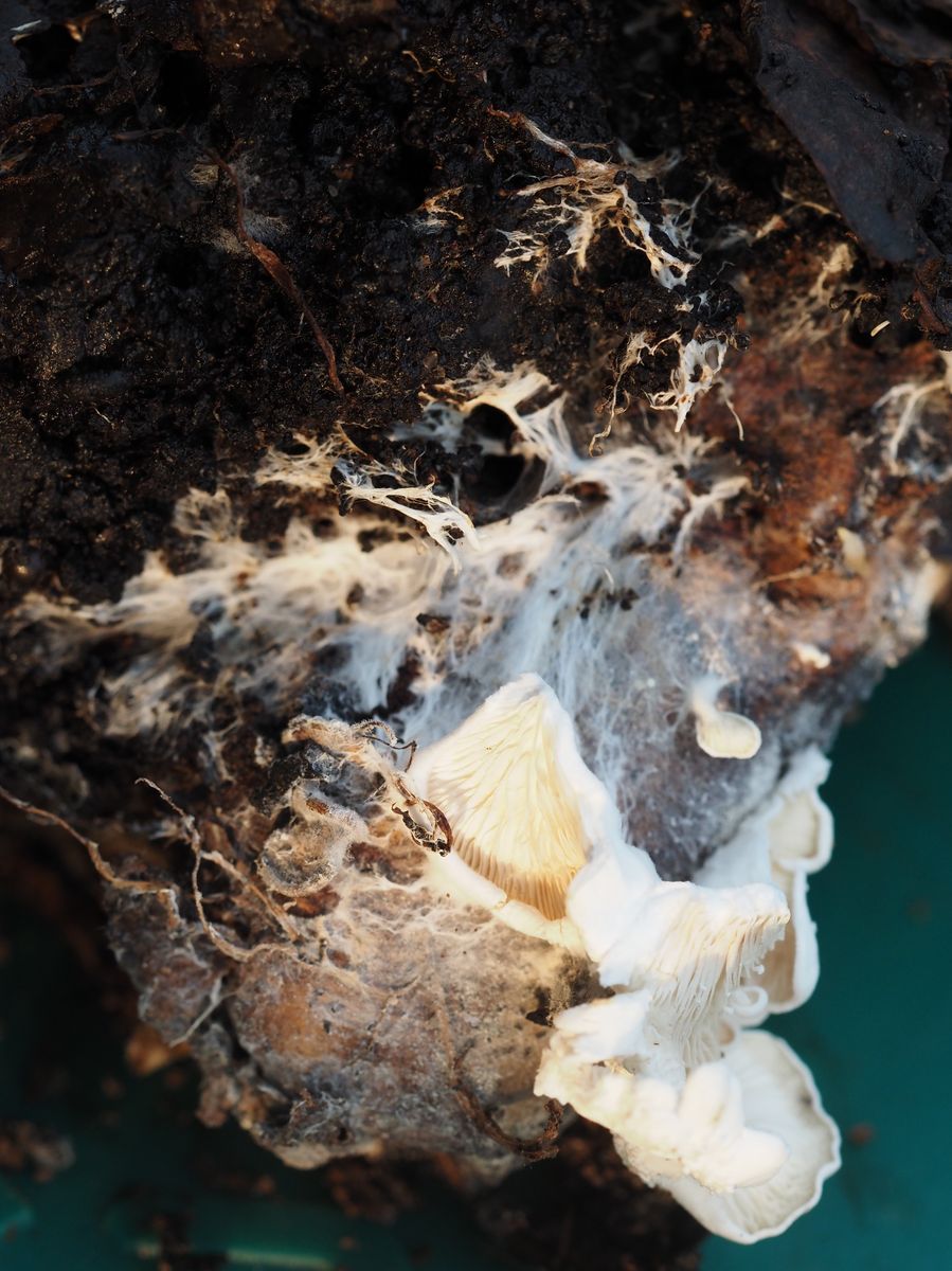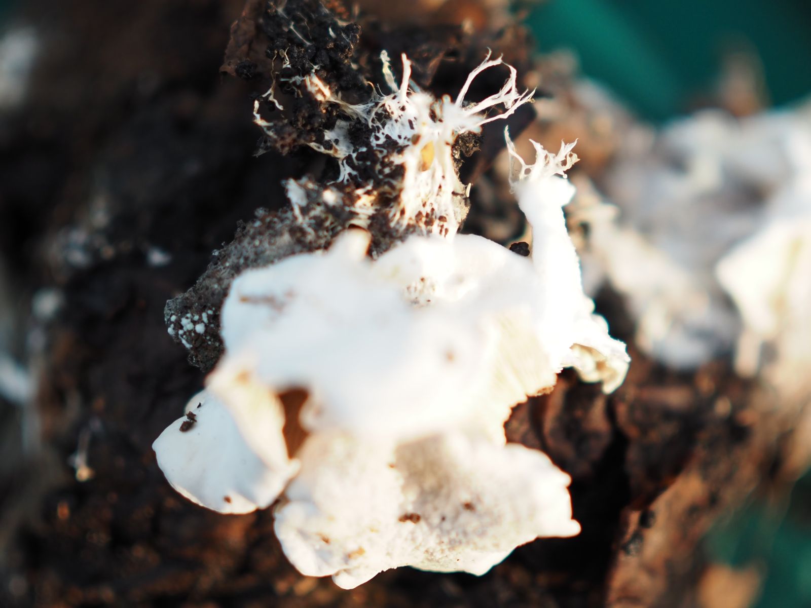vor einigen Tagen bemerkte ich in unserer mit einem Deckel geschlossenen Komposttonne die abgelichteten weißen Pilze.