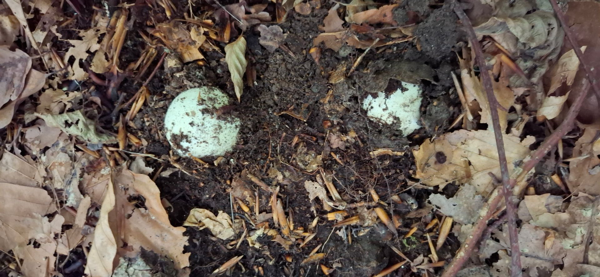 heute am Straßenrand neben einer Gartenmauer unter einer Buche gefunden.