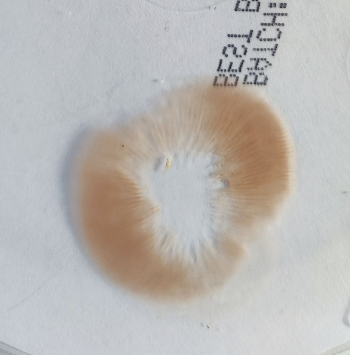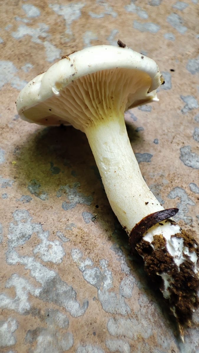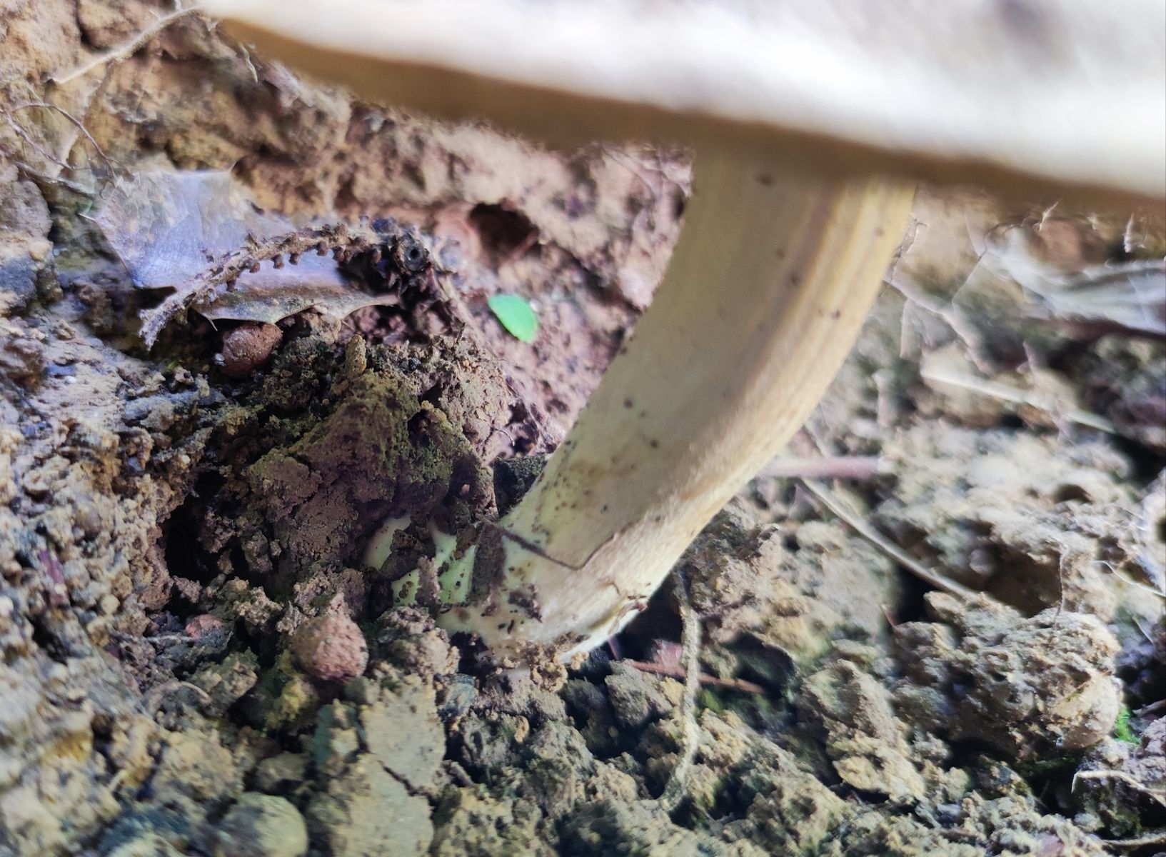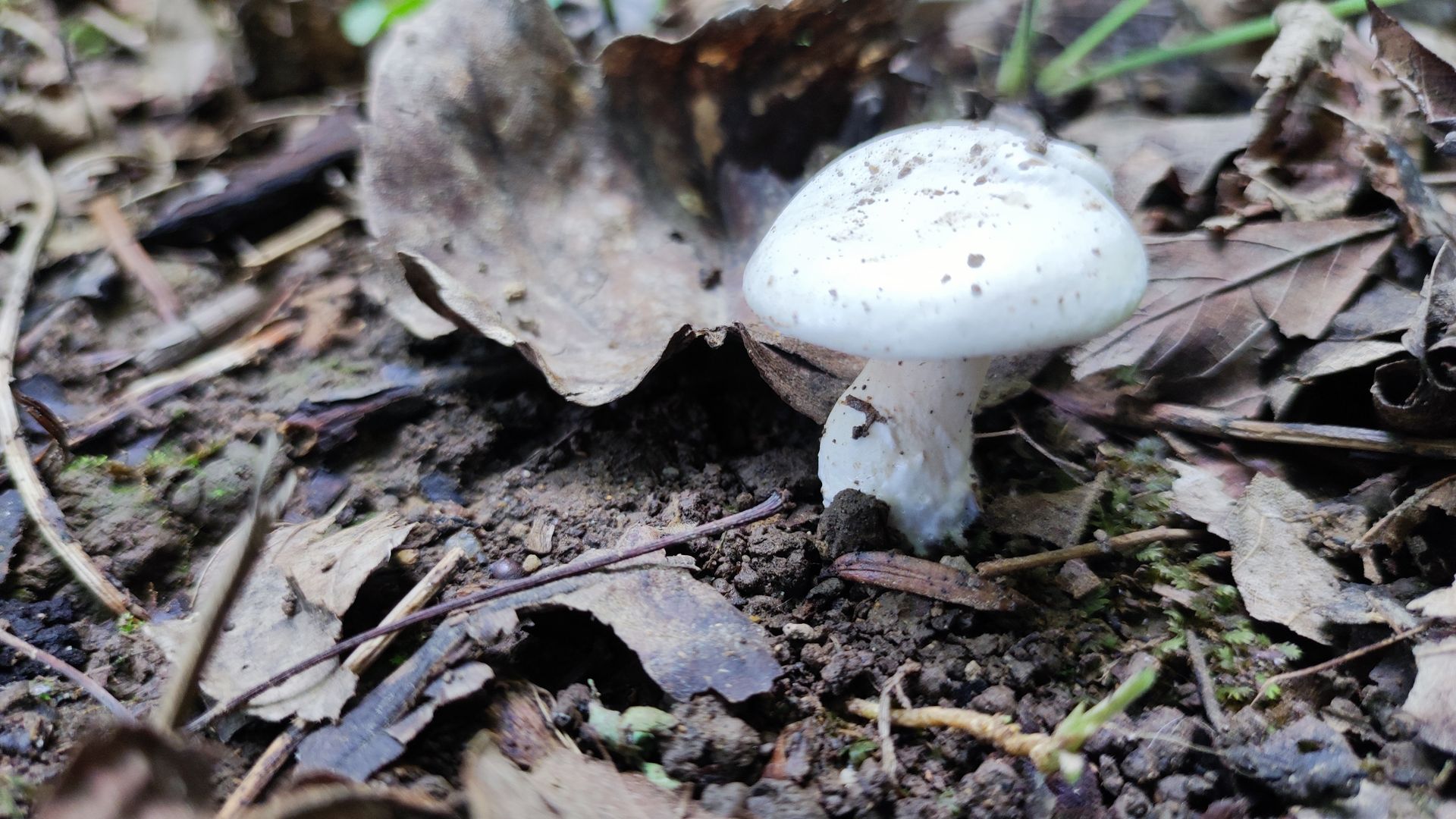 Dann leuchtete noch was WeiĂes aus Laubstreu und Efeu. KWP mit leicht trichterlingsähnlichem Habitus. Lamellen dicht, untermischt, herablaufend. Geruch fĂźr mich unidentifizierbar. Irgendwo zwischen pilzig, mehlig und kellerartig. Hutoberfläche weiĂ u einigermaĂen glatt, Stiele nur leicht strukturiert, Stielbasis etwas flockig bzw wattig. Rand bei jungem Exemplar eingerollt, altes Exemplar ausgebreitet bis wellig. GrĂśĂe: Hut Dm 2,5-5cm, Stiele 3-5cm, Stiele Dm 1-1,5cm.