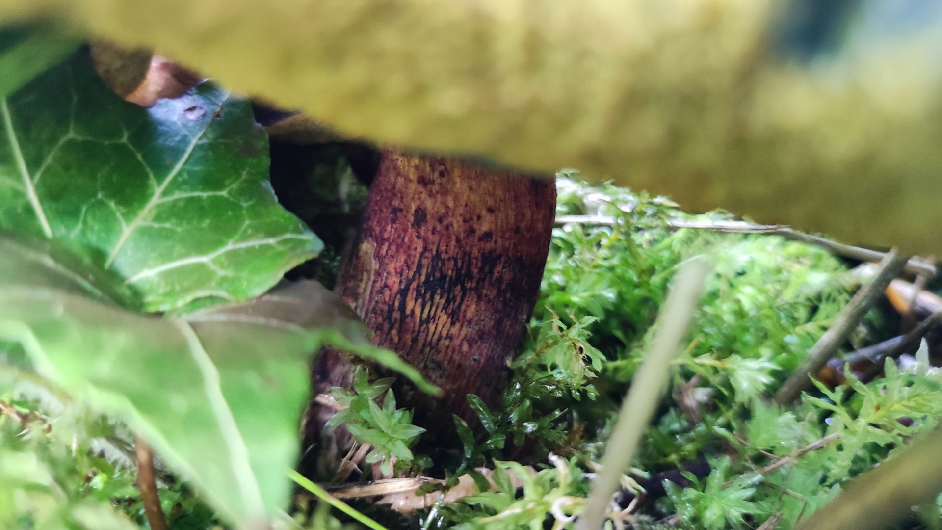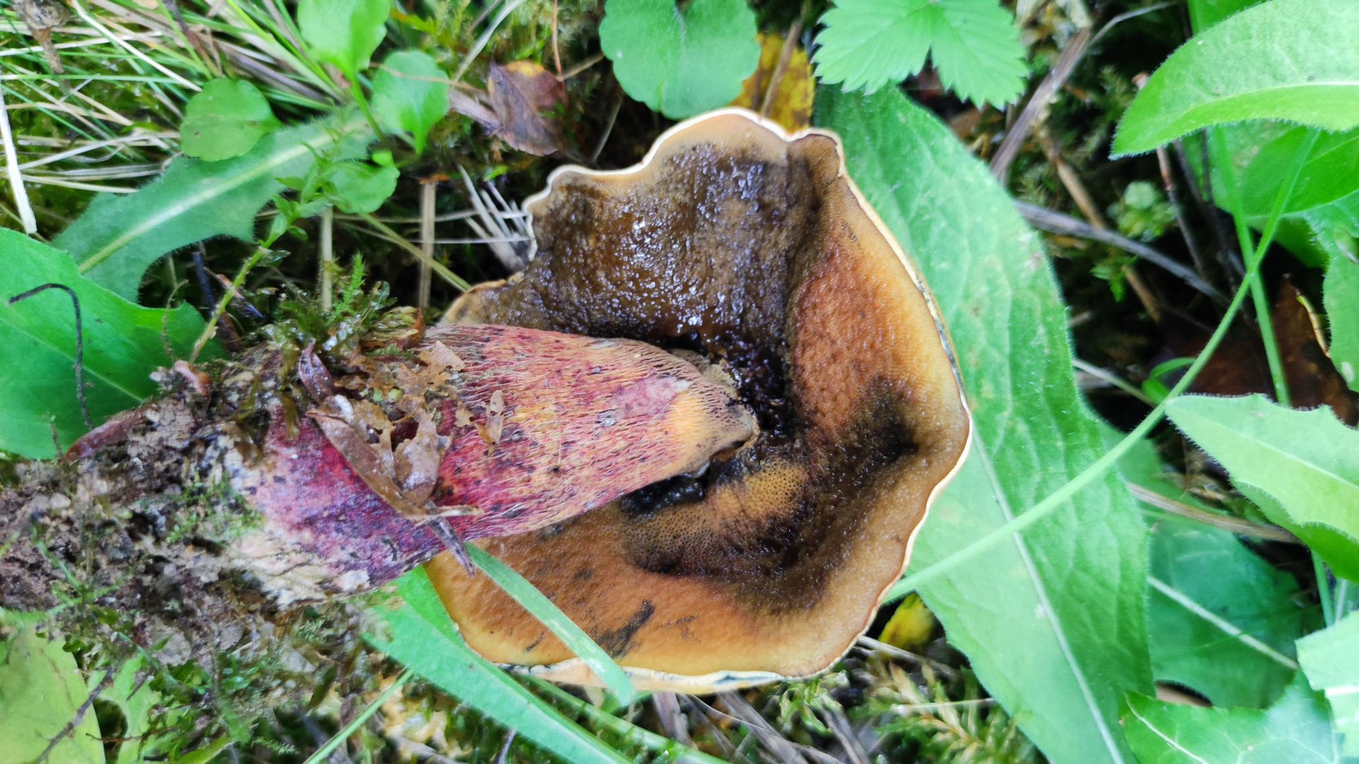 Dann habe ich nochmal weitergesucht - und wurde mit alten Bekannten belohnt, die sich immer mal wieder in meinem Garten zeigen. Drei fette Netzhexen! Leider sind sie schon halb weggefault...hätte ich wohl doch frßher mal im verregneten Garten umherschauen sollen! Die Stiele mit den roten Netzen und das Blauen sind aber trotzdem noch erkennbar.