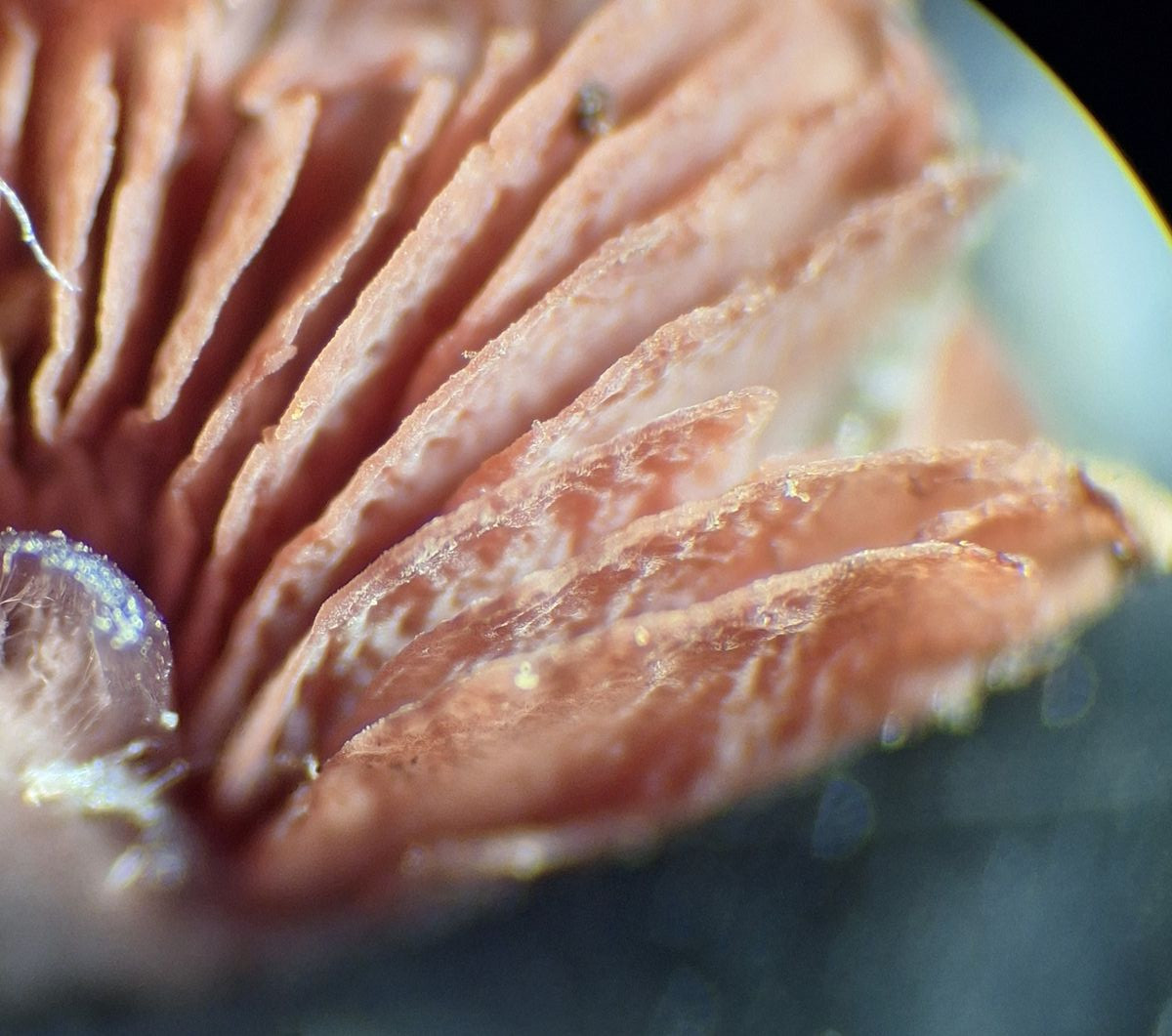 Lamellenschneide anscheinend fertil, Basidien 4-sporig