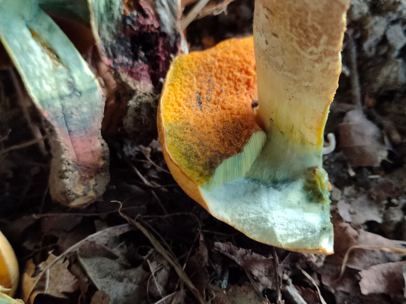 Wenn diese Frucktkörper am Hut, Stiel und Röhrenmündung bei Berührung blauen, würden ich für suillellus queletti plädieren.