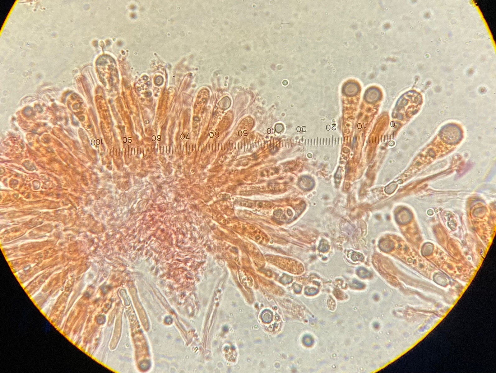Der Vollständigkeit halber habe ich ihn noch mikroskopiert und einige Fotos angefertigt. Die Sporen waren recht unterschiedlich groß, was wohl von den zwei- bis sechssporigen Basidien herrührt.