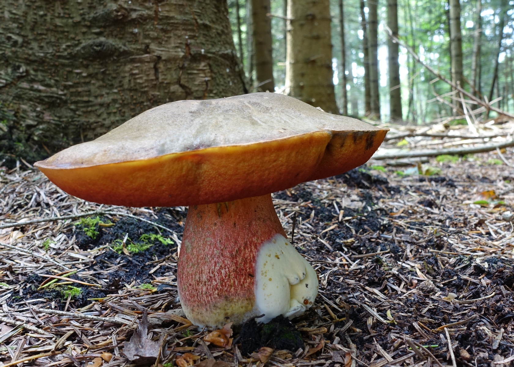 heute haben wir diese Flockenhexe gefunden. Erst wollte ich sie essen. Dann habe ich das weiße Ding an dem Stil gesehen. Danach wollte ich sie nur ablichten. Erst jetzt zu Hause stelle ich mir die Frage, was das weiße Ding eigentlich ist? Einfach ein Schimmel oder etwas leibeigenes von dem Röhrling? Guttationströpfchen sieht man auch drauf.