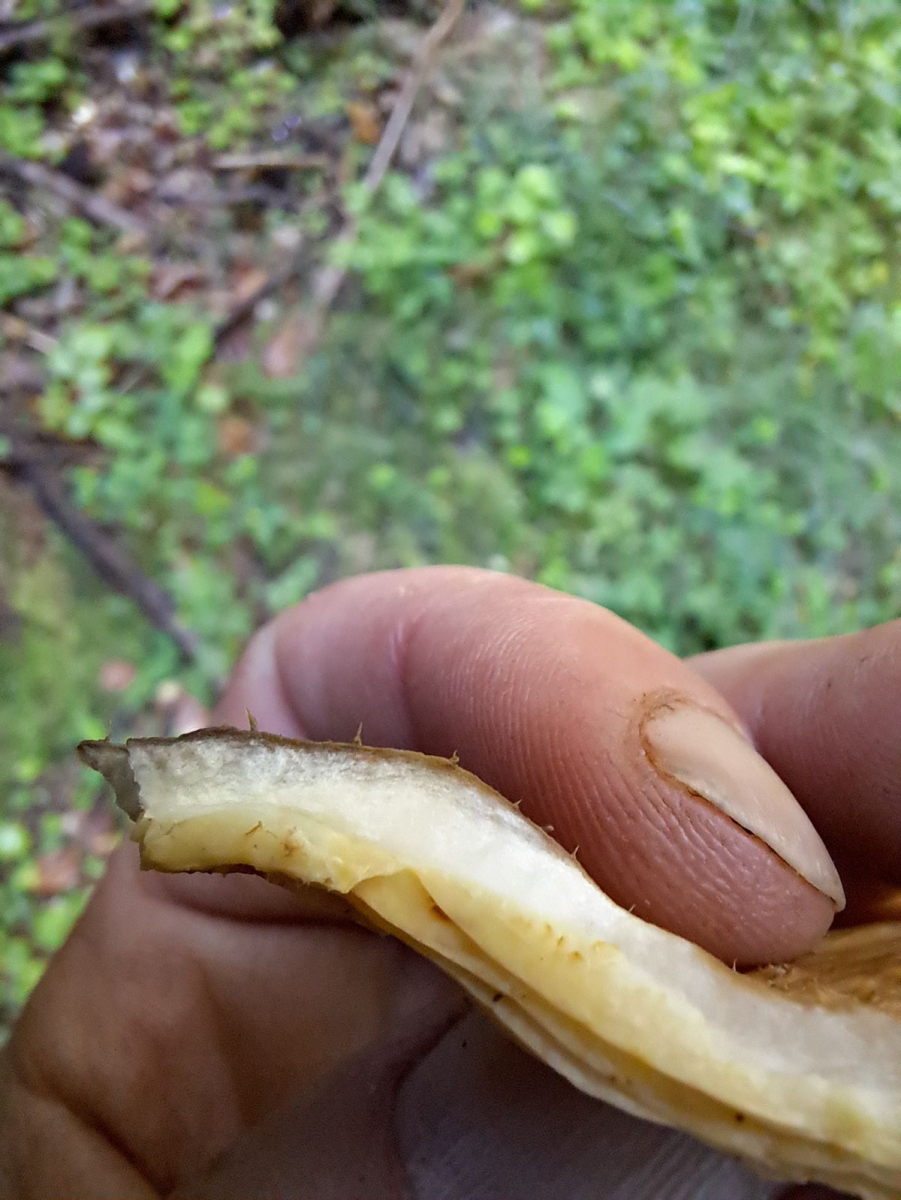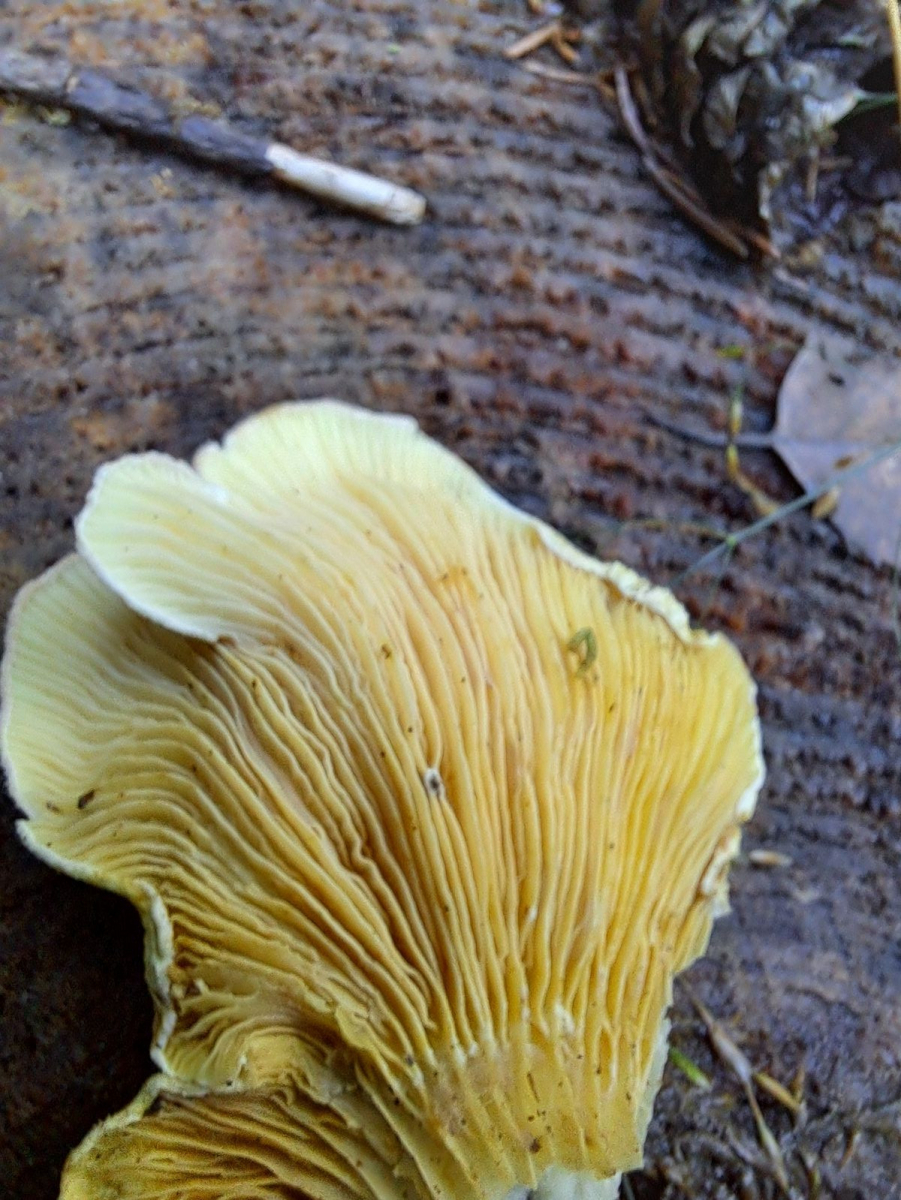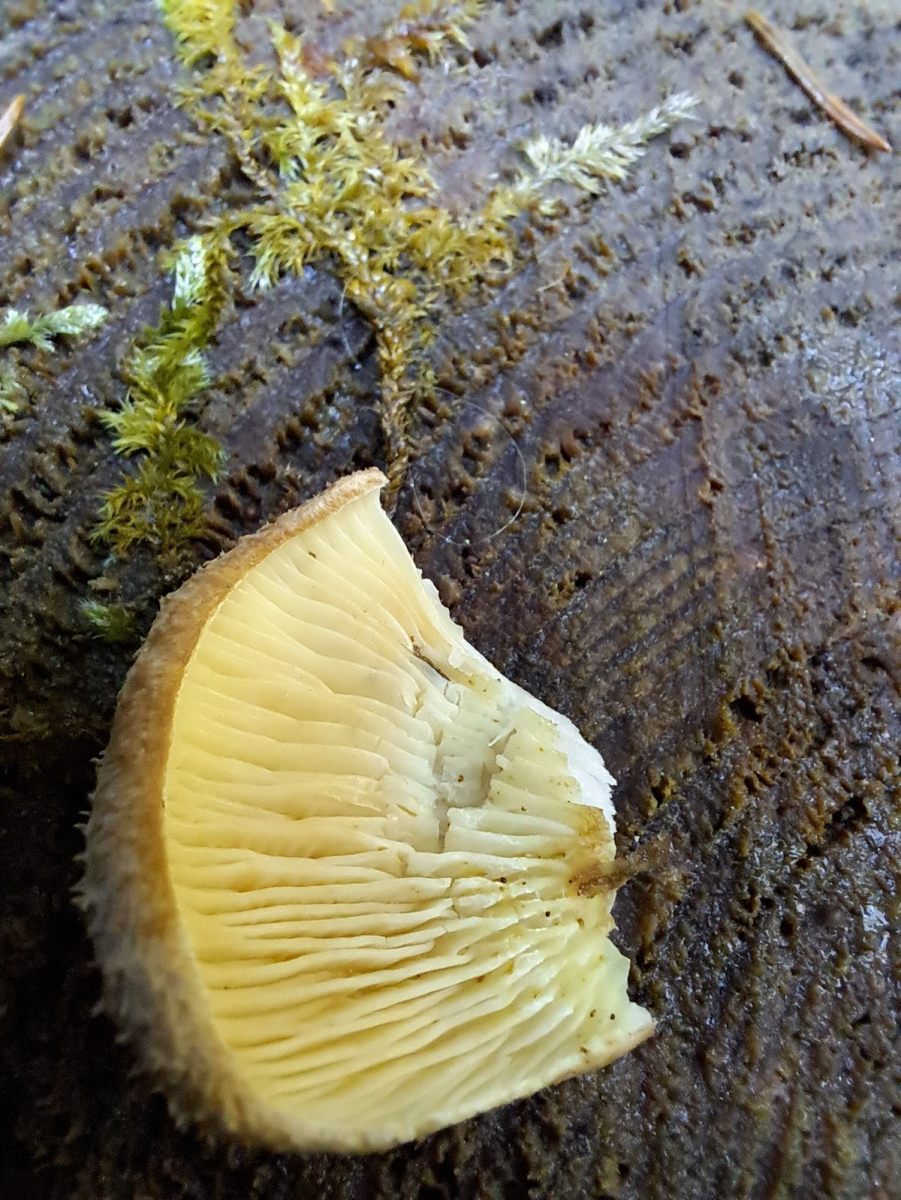 Folgenden Pilz fand ich im fichtendominierten Wald, vermutlich auf einem Fichtenstubben.