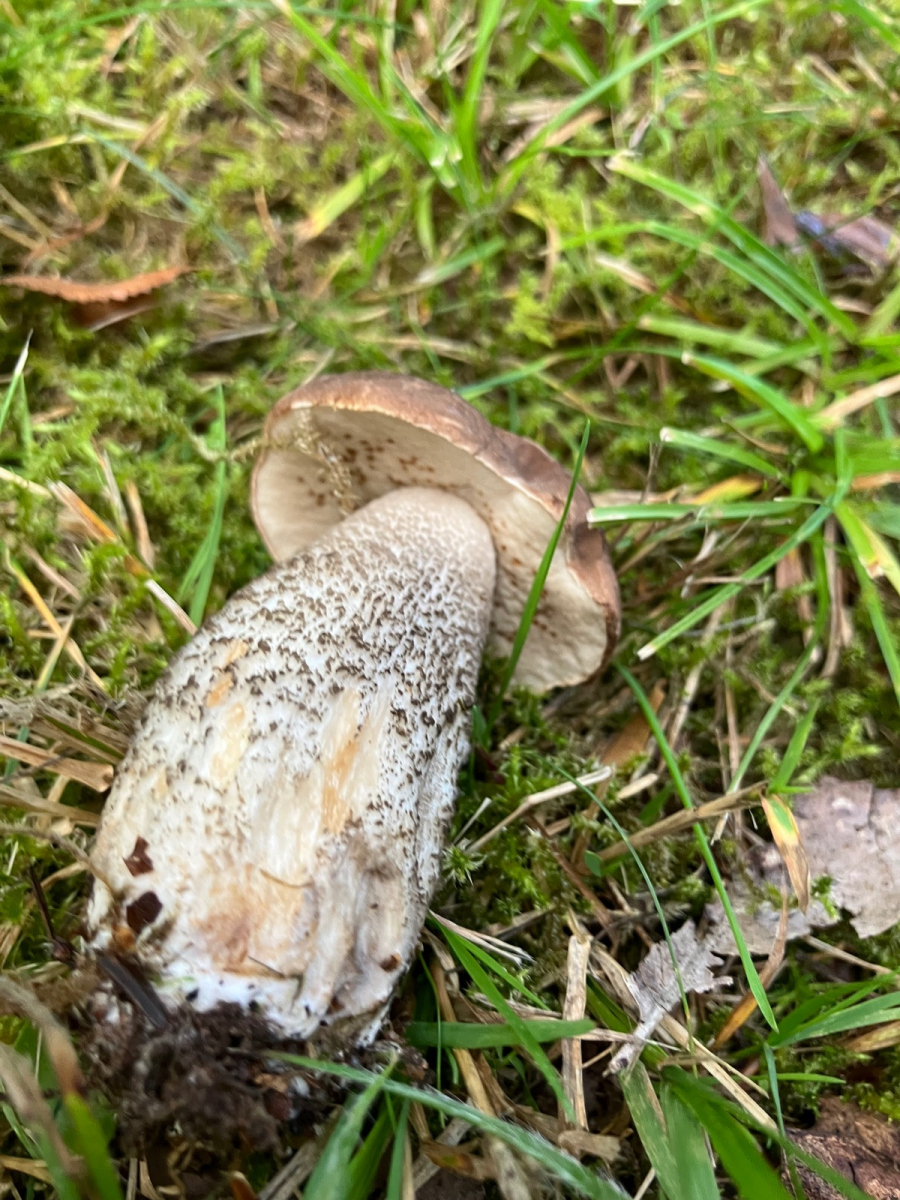 ich habe heute beim Spaziergang einen jungen Birkenpilz gefunden (vermutlich Leccinum scabrum). Standort: grasiger Waldrand mit Birken in der Nähe. Der Pilz wirkt insgesamt gesund – fester Stiel, unverletzter Hut, keine auffälligen Gerüche oder weichen Stellen.