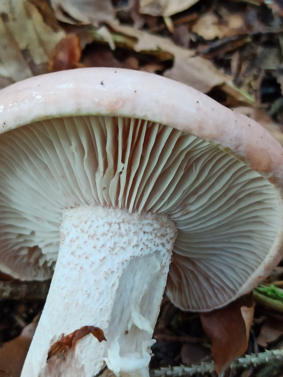 da H. russula ja eine thermophile Laubwaldart ist, sollte der auszuschließen sein. Da der Fund hier nicht purpurn fleckt, sondern von Anfangvan rötlich durchgefärbt ist, sollten die eigentlichen Verwechslungspartner hier H. persicolor oder/und H. fragicolor sein, der meist synonym zu H. erubescens gestellt wird. Ein