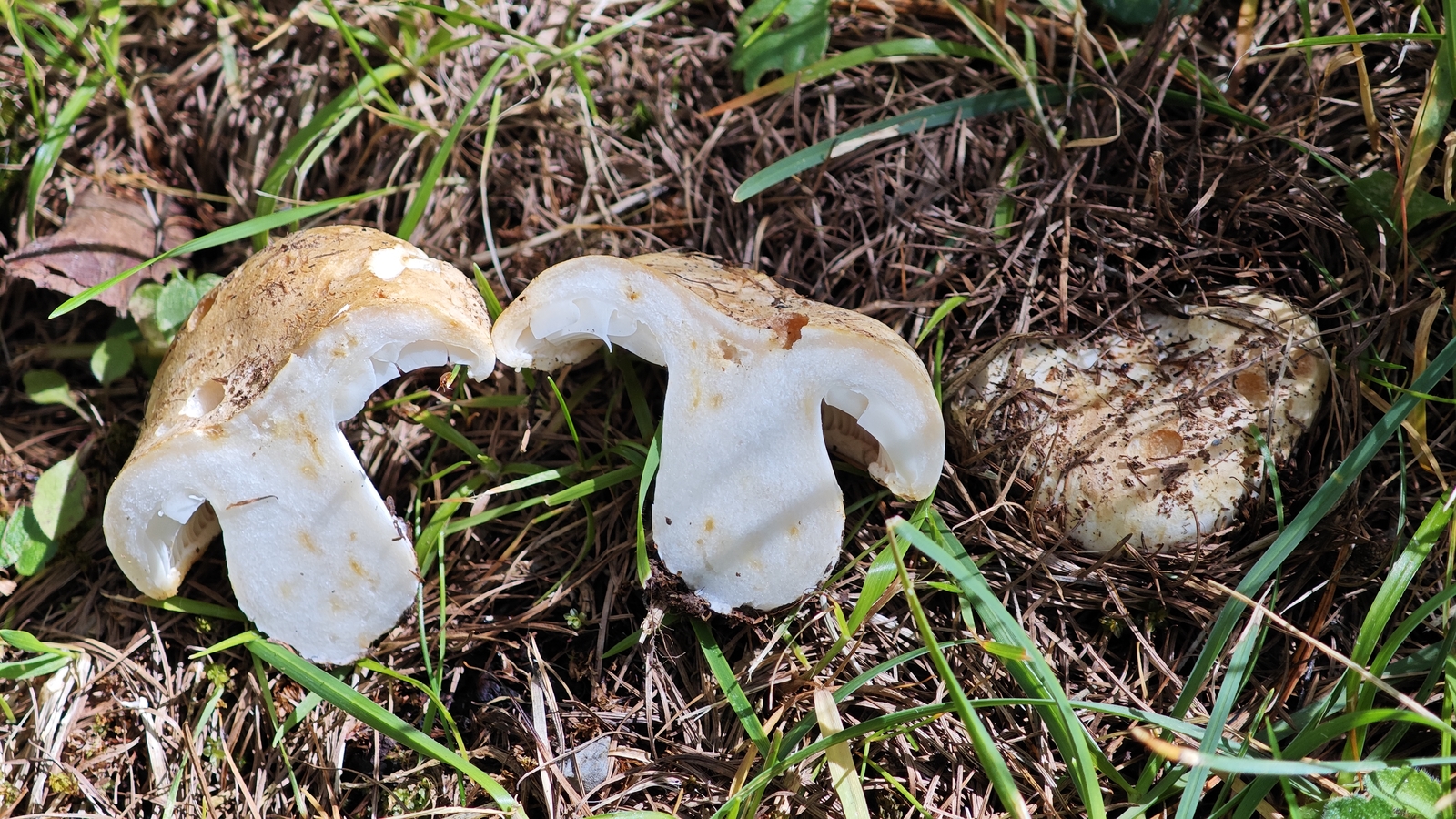 Vor etwa einer Woche habe ich am Wegrand einen Täubling gefunden, den ich zunächst eigentlich nicht genauer untersuchen wollte, dann hat mich das Interesse aber doch gepackt und ich habe mal versucht mit der Bestimmung anzufangen. Ich kam dann zum Russula delica Aggregat, wollte aber wissen, ob man das noch genauer bestimmen kann.