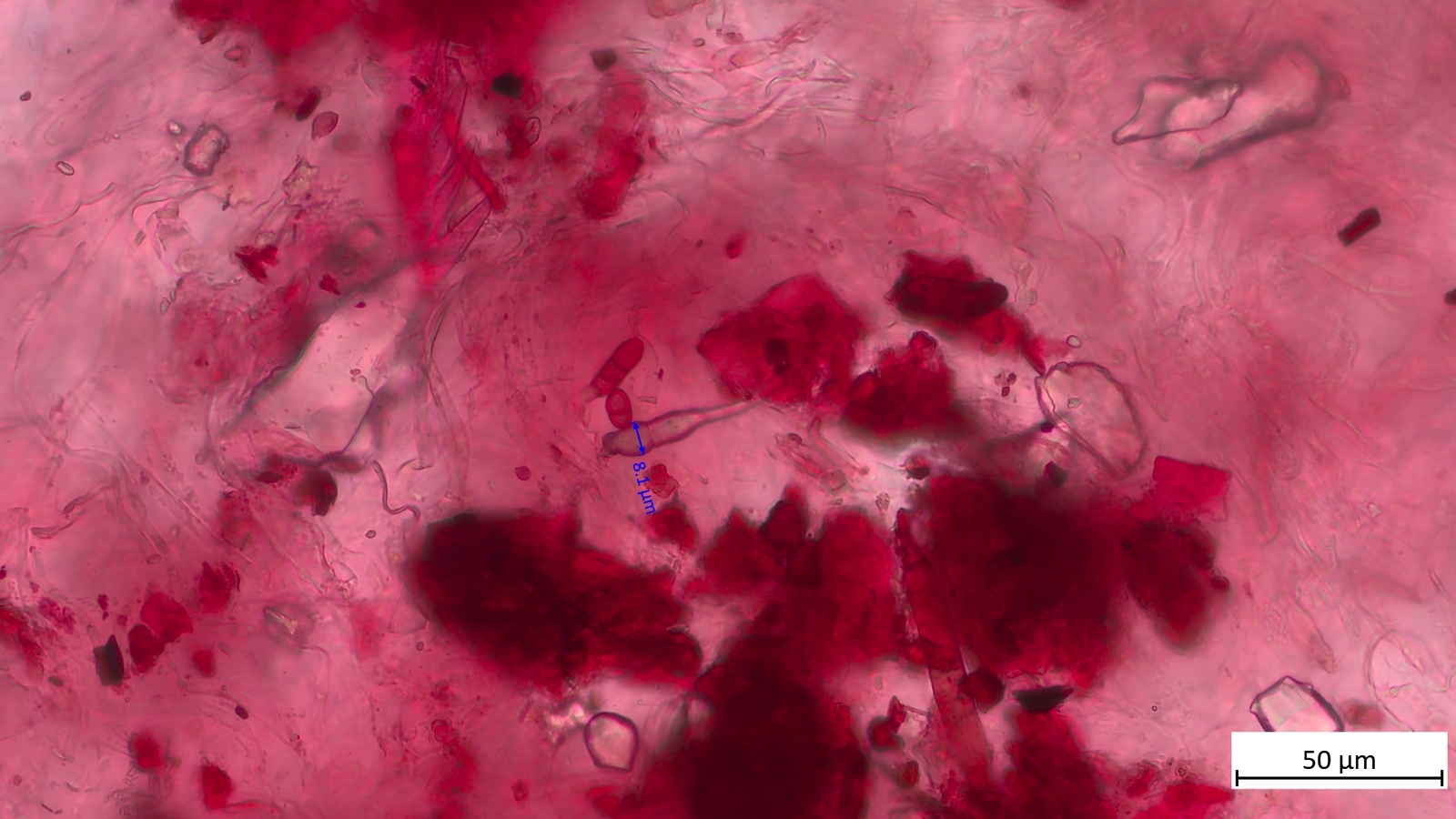 Zum Schluss habe ich zum ersten Mal versucht mit Karbolfuchsin zu färben. Richtig schlau bin ich daraus aber nicht geworden. Nachfolgend ein paar Bilder. Sind das Pileozystiden oder was ist das?