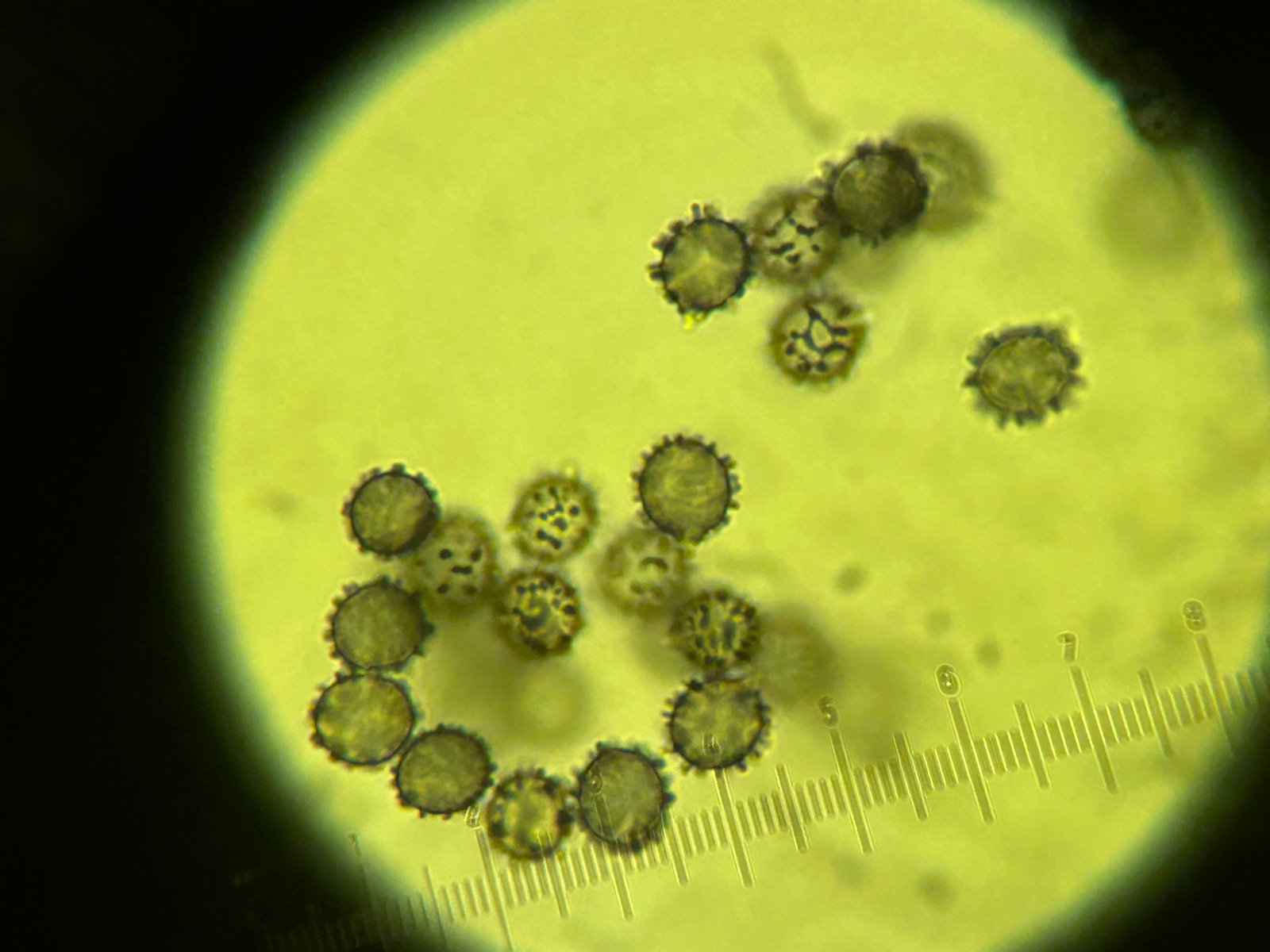 Sporen habe ich 34 gemessen: 8.8 µm (7.6–9.6 µm) × 7.3 µm (6.6–8.0 µm), Q = 1.20 (1.09–1.28):