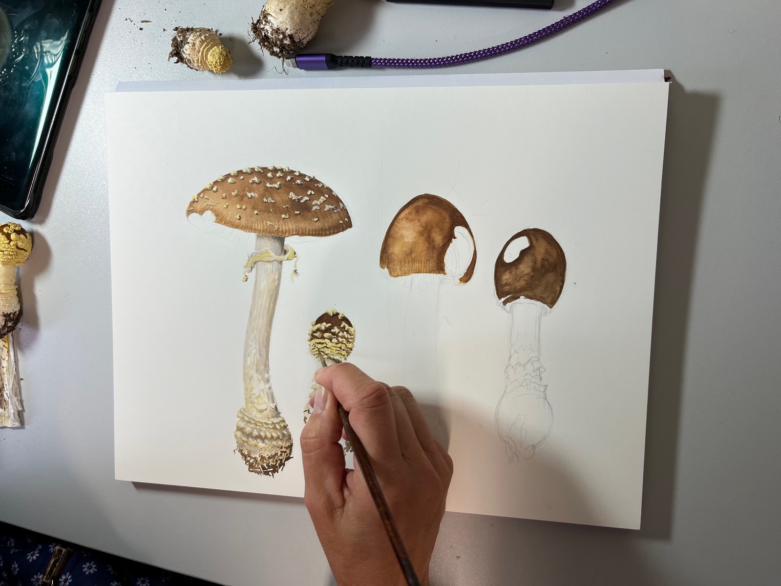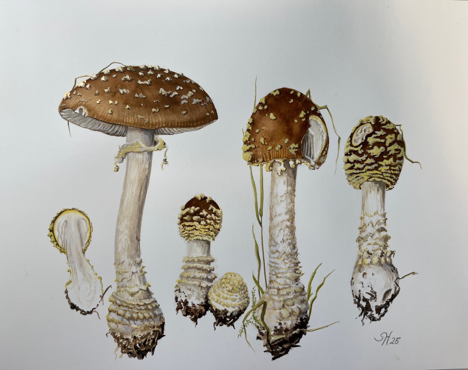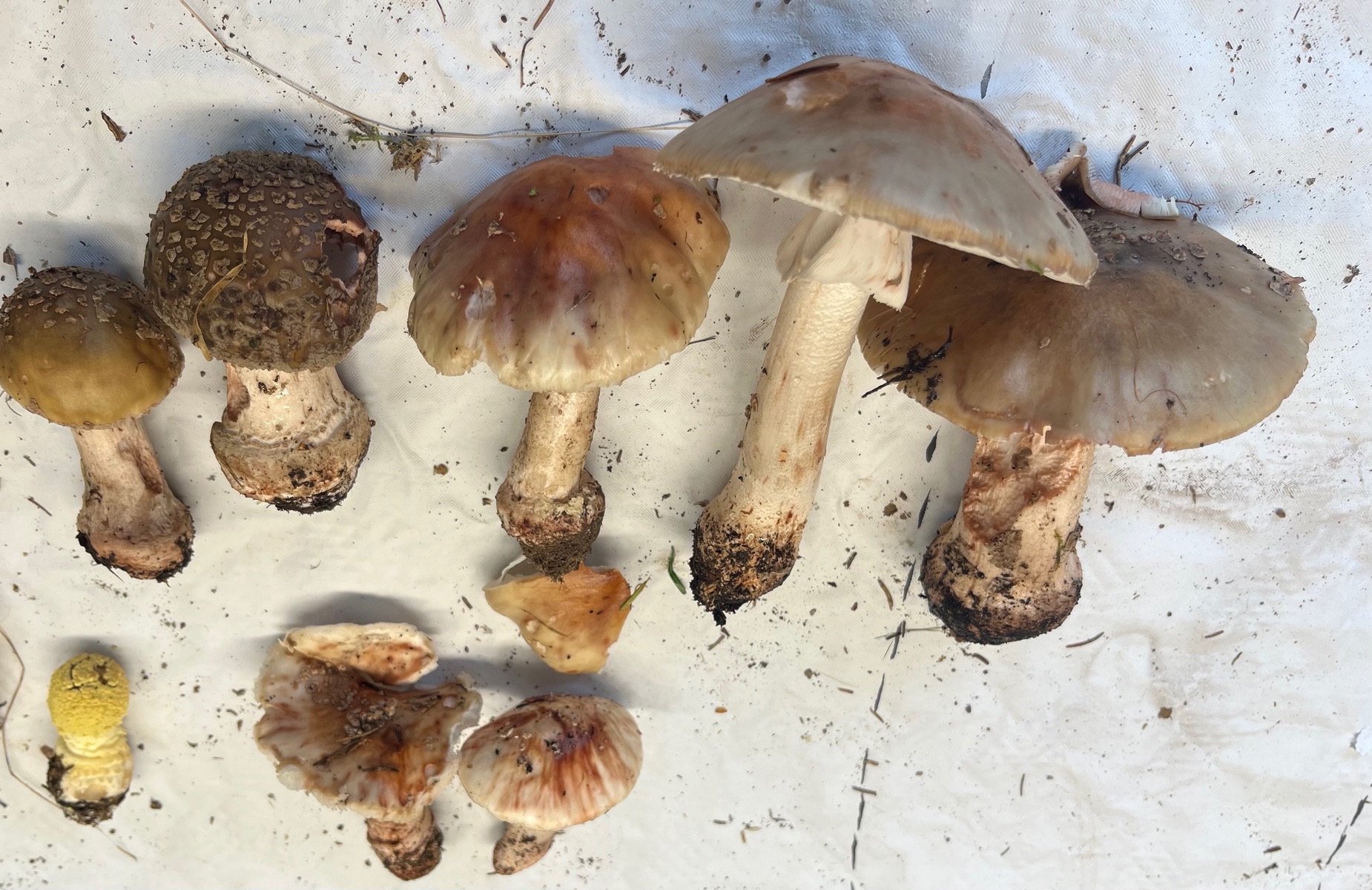 Wenn an verschiedenen Orten gesammelt wird, ist die Variabilität der Art gut zu erkennen. Andreas Vortrag über Amanitenknollen und die Stielbasis von Scheidenstreiflingen konnte durch Exemplare der verschiedenen Arten gut rekapituliert werden.