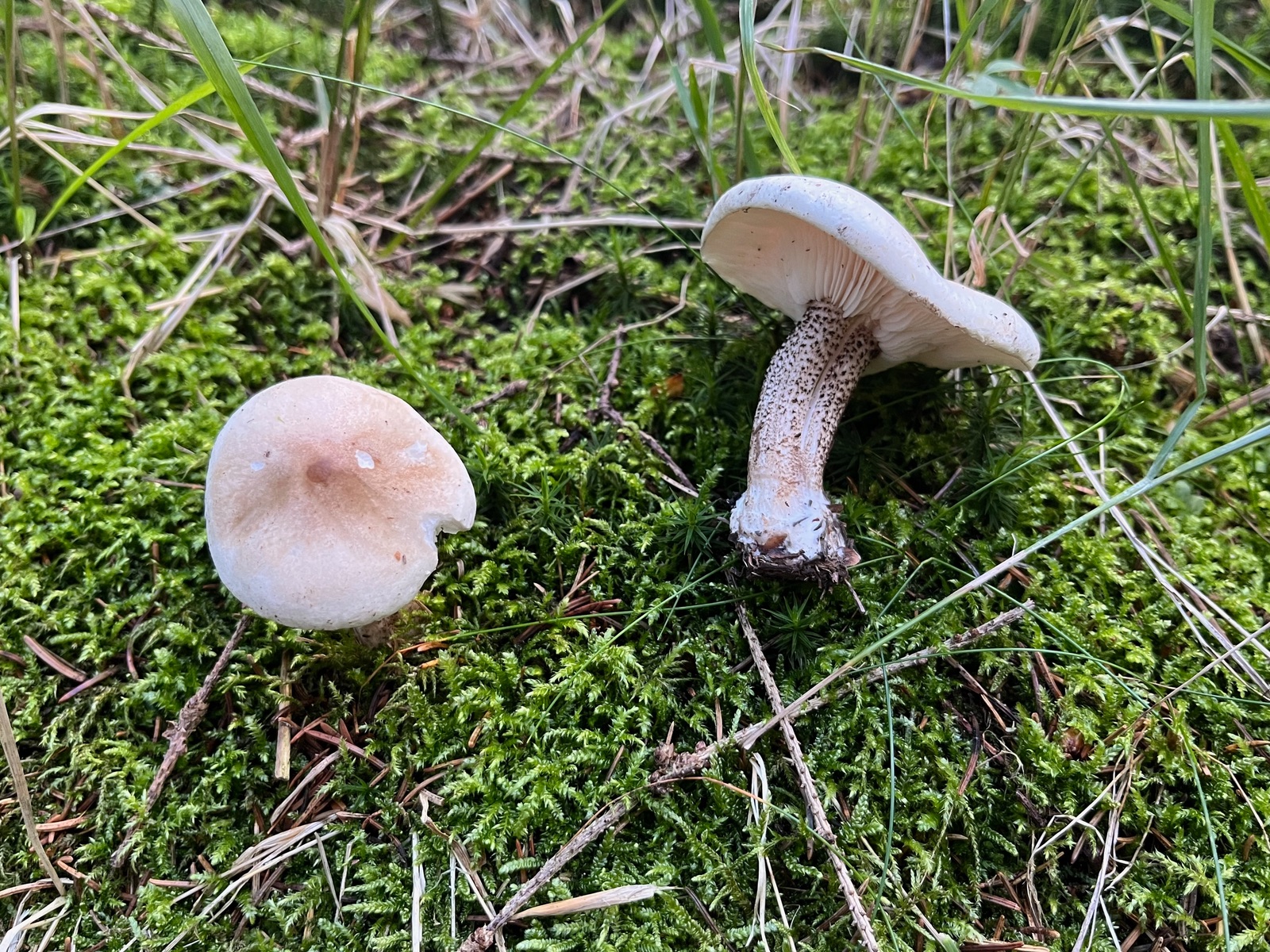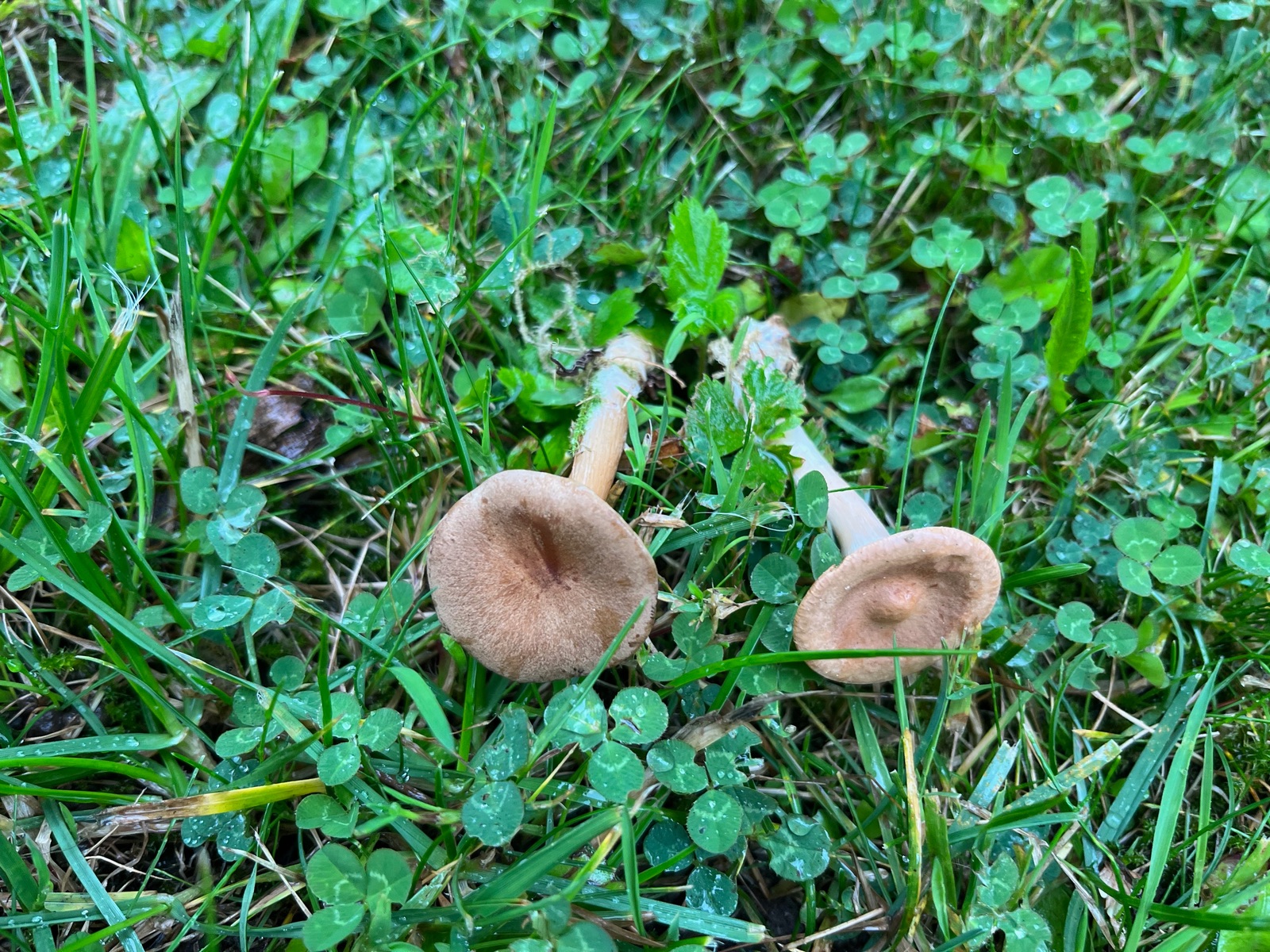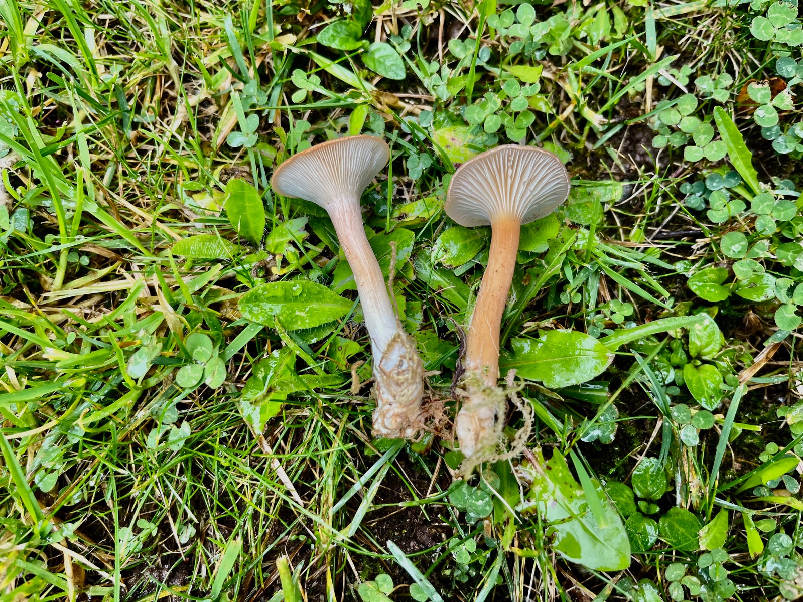 15. Links Kerbrandiger Trichterling - Infundibulicybe cosatata, rechts der Ockertrichterling - Infundibulicybe gibba