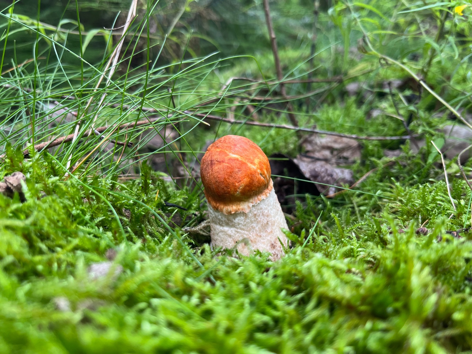Am letzten Tag goss es wie aus Kannen. Um das Wachstum von Schwimmhäuten nicht zusätzlich anzuheizen wählte Andreas ein Exkursionsziel in der Nähe. Da foppte uns der Pechschwarze Milchling, der bis zum Hals im Torfmoos steckte und daher einen hellen Stiel hatte. Viele Steinpilze schoben ihre Köpfchen aus dem Boden. Die Pilzsaison beginnt. Schön für den Folgekurs.