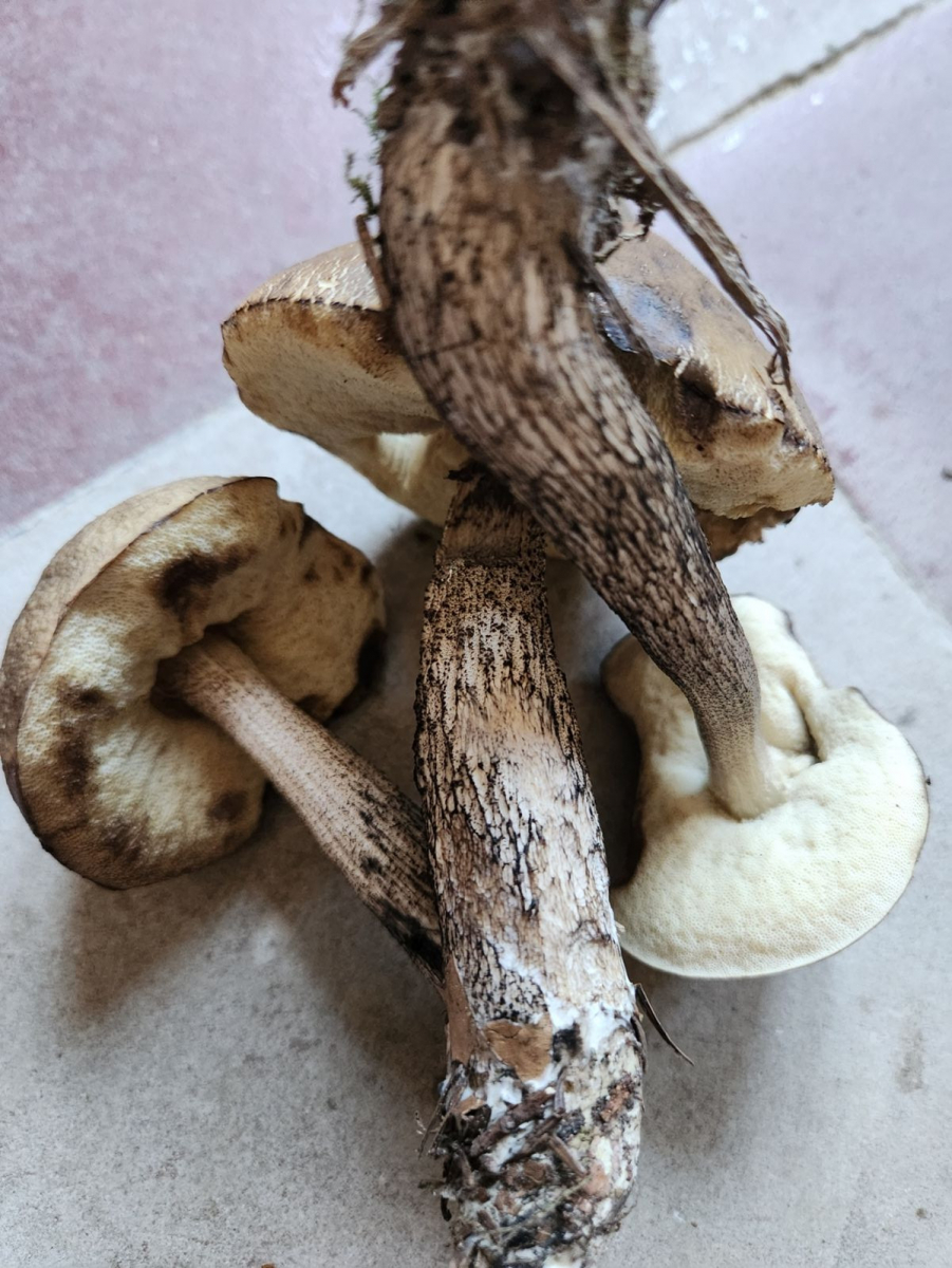 ich bin neu hier und wollte fragen ob mir jemand weiterhelfen kann. Ich bin jetzt schon ein paar mal in den letzten Tagen über diesen Pilz "gestolpert". Und weiss nicht was das ist. Soweit ich mich nicht täusche wächst er auf Totholz, aber es waren keine grossen Baumstümpfe. Es ist ein Röhrling dem Anschein nach, er bläut nicht beim Anschneiden, der Hut ist ledrig, okker und der Stiel mit einem schwarzen Netz welches auffällig ist.