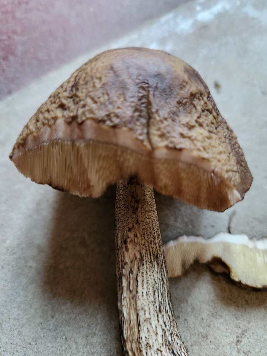 ich bin neu hier und wollte fragen ob mir jemand weiterhelfen kann. Ich bin jetzt schon ein paar mal in den letzten Tagen über diesen Pilz "gestolpert". Und weiss nicht was das ist. Soweit ich mich nicht täusche wächst er auf Totholz, aber es waren keine grossen Baumstümpfe. Es ist ein Röhrling dem Anschein nach, er bläut nicht beim Anschneiden, der Hut ist ledrig, okker und der Stiel mit einem schwarzen Netz welches auffällig ist.