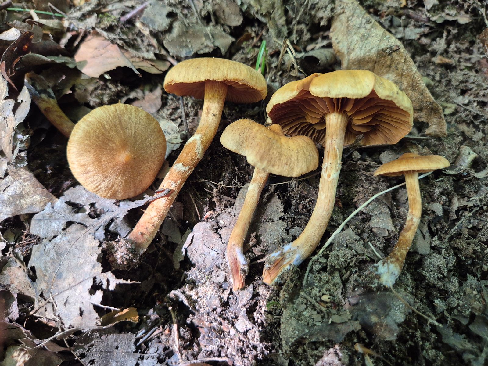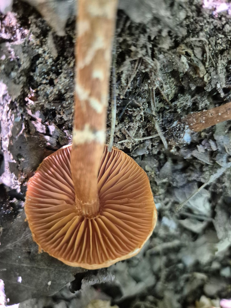 Der spitzgebuckelte Hut und die starke Natterung am Stiel haben mich an C. rubellus denken lassen, wobei ich den an diesem Standort nicht vermutet hätte. Laut FoTE kann die Art auch mit Buchen. Gegen C. rubellus spricht für mich auch, dass die Hutfarbe eher ockerfarben als orangerot daherkommt.