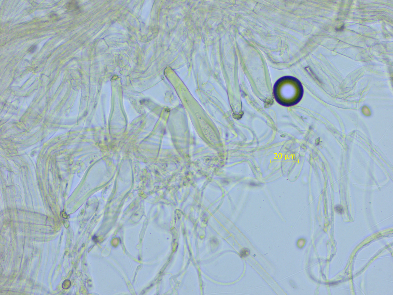 Danke, ich schaue in der Gruppe nochmal. Es gab einige (aber wenige) sandige Zystiden, das sieht man auf den Bildern nicht gut.