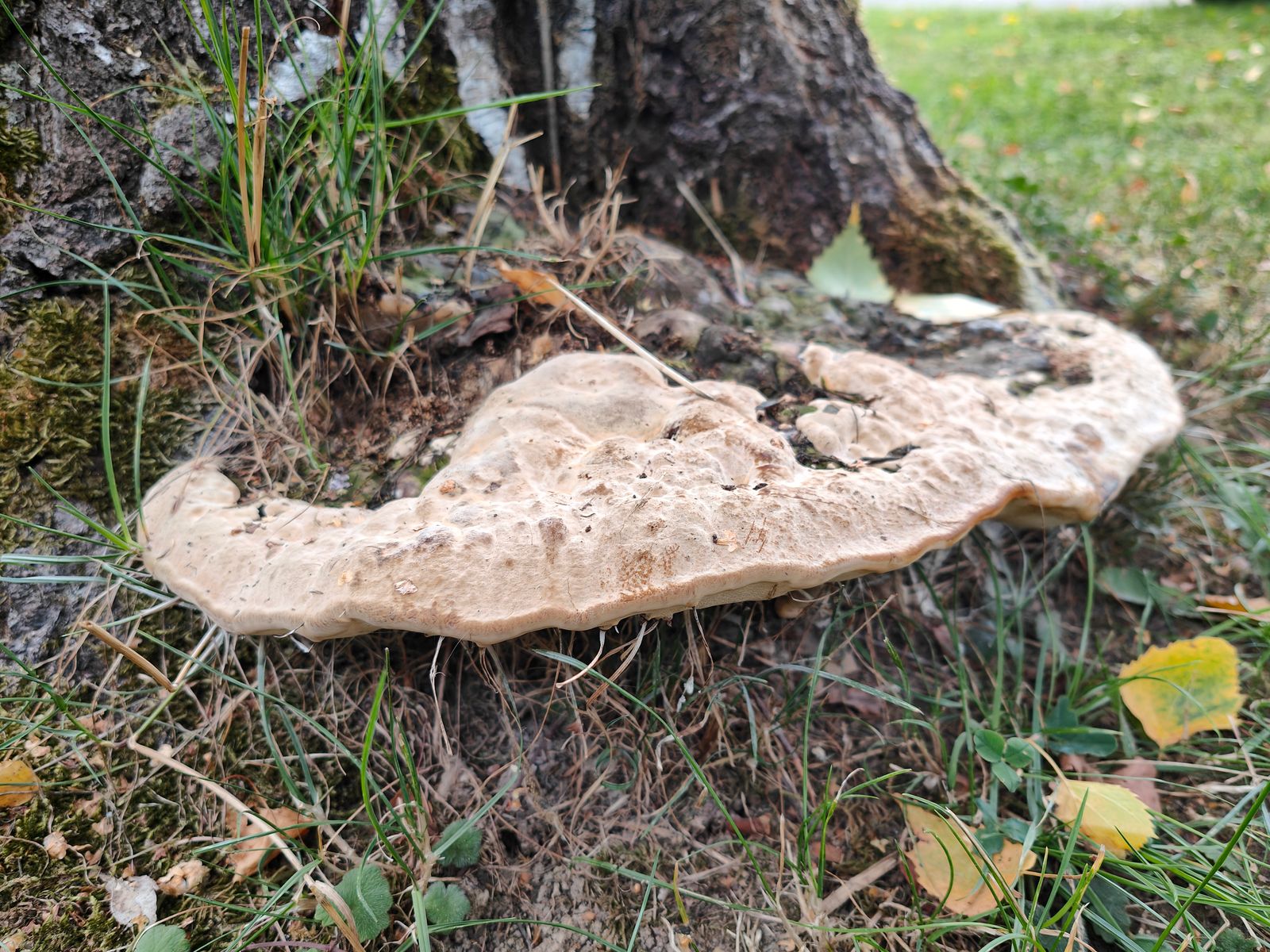 ich bin da gerufen worden für ein Porling zu bestimmen. Die alte Birke ist wohl nicht mehr zu retten. Parasitiert auf Bodenhöhe.