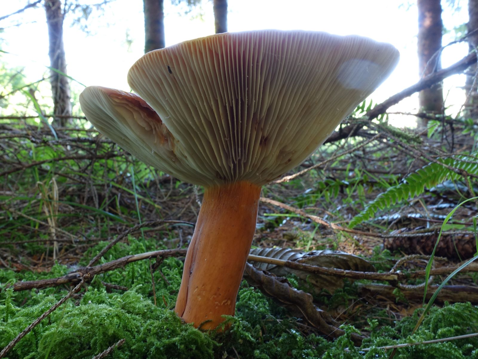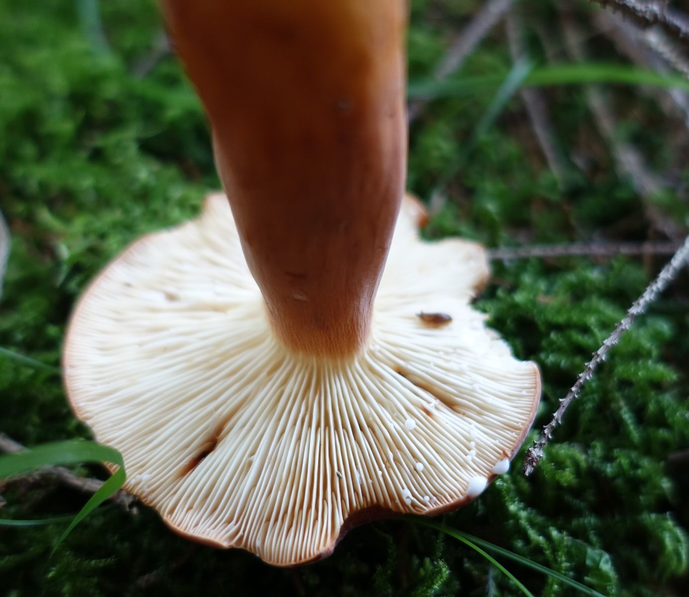 Bild 4 FK1: man sieht jetzt mehr Tropfen von weiser Milch (klebrig), viele Zwischenlamellen, Hutrand nur sehr leicht eingebogen