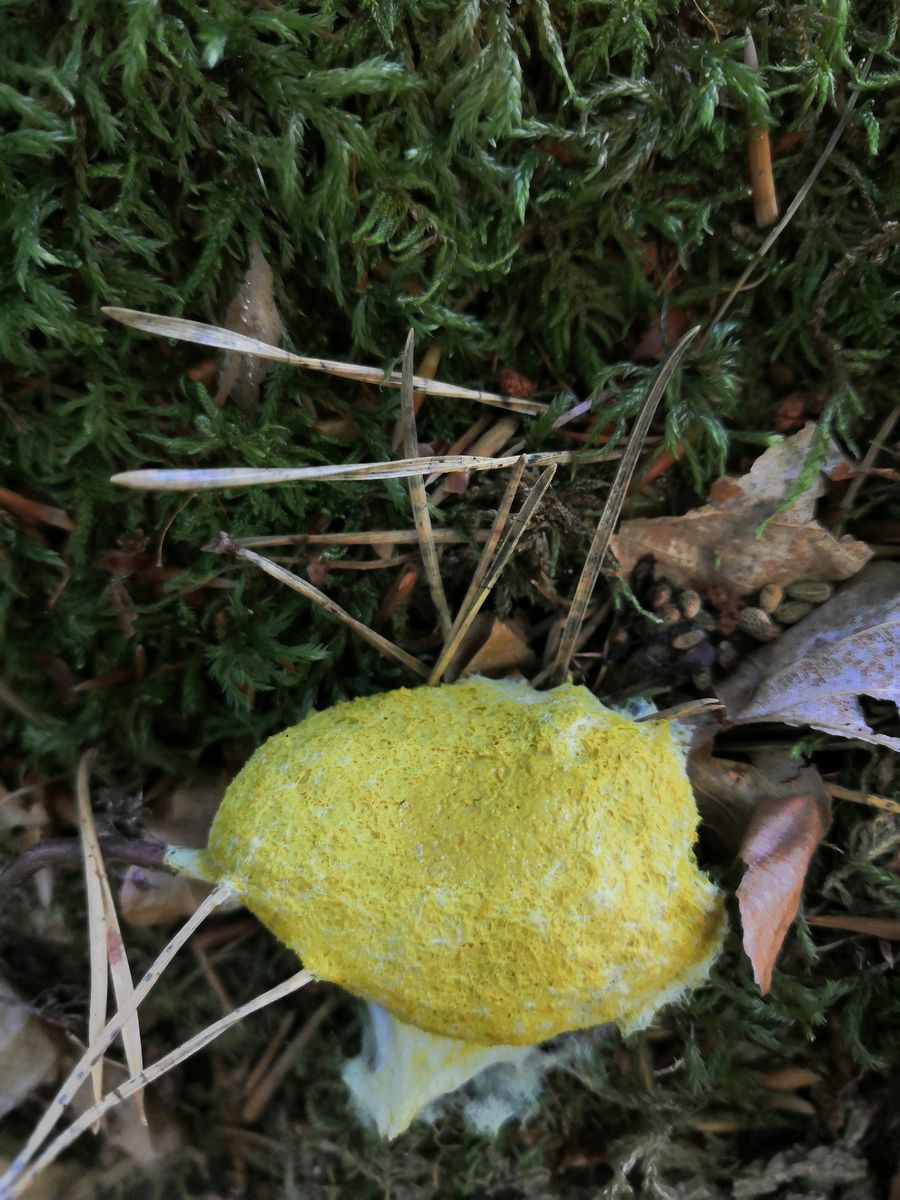 Ich nehme sehr stark an junger Reizker. Was mich so verwundert ist dass die Lamellen fehlen. Hab ich so noch nicht gesehen. Kennt ihr das so?