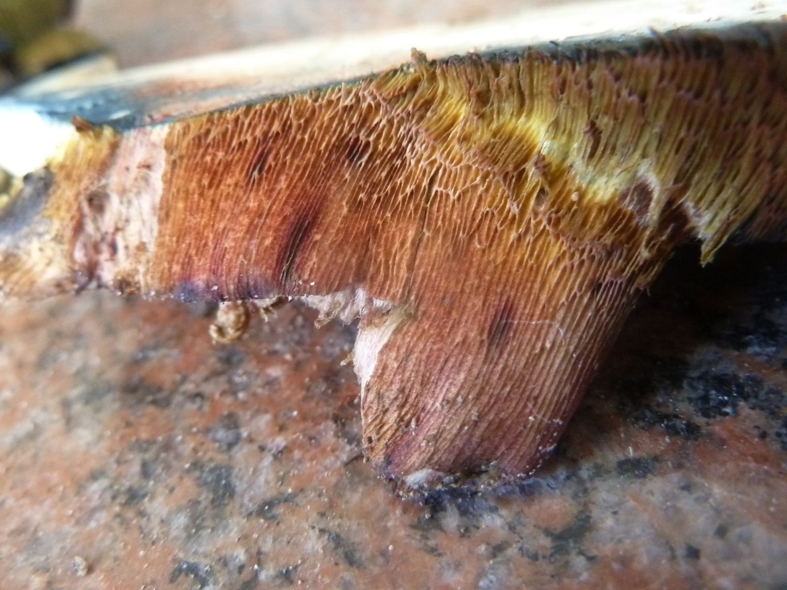 Ein derart überaltertes Exemplar kann wahrscheinlich schon mal mild statt bitter schmecken. Auch das blauverhalten ist bei solch einem schlappen nicht mehr verlässlich. Wenn du willst, darfst du selbstverständlich deinen Fund als fechtneri verbuchen, aber mich überzeugen deine Fotos nicht, sorry. Aus welchem Habitat stammt denn der pilz überhaupt?