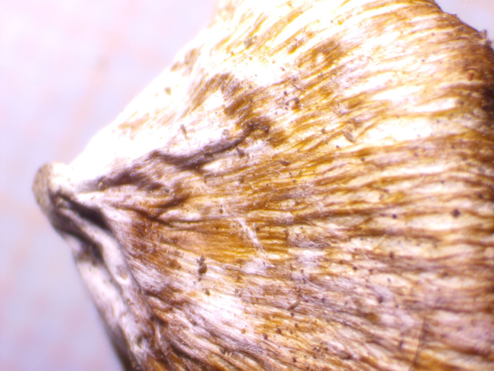 bei Risspilzen bin ich mir immer etwas unsicher. Ich habe am 17.8. bei Gießen unter Buchen und Eichen folgende Aufsammlung gemacht, die ich für Inosperma maculatum oder Inosperma fulvum halte. Der Geruch ist kräftig, aber weder spermatisch noch nach Honig, sondern angenehm herb aromatisch; eher so wie manche Telamonien riechen können. Ich kann das schwierig beschreiben, ich hatte mal eingelegte Oliven vom Wochenmarkt, die ähnlich gerochen haben. Der helle Hut ist spitzkeglig und von rotbraunen Radialfasern überzogen, darüber liegt mehltauartig in unregelmäßigen Flecken weißlicher Velumfilz. Die Stiele waren anfangs ziemlich hell, aber nehmen im Alter bzw während des Dörrens hauptsächlich eine rotbraune Farbe an. Erstmal die Makrobilder: