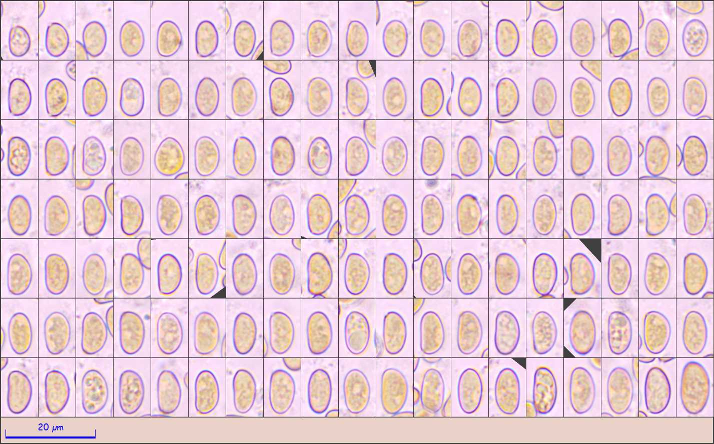 Die Sporen sind glatt, manchmal annähernd bohnenförmig, der Apex meist stumpf.