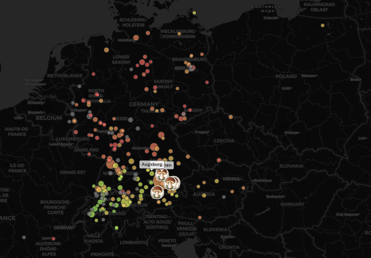 Ich hab sie vor einem Monat das erste mal gesehen, hab mich ehrlich gesagt nicht DADURCH leiten lassen, aber auch ehrlich gesagt im nachhinein gesehen, dass sie schon richtig lag, als ich viele Sommersteinis fand (und einige Edulis) war auch dort die Wahrscheinlichkeit hoch, und als es weniger waren sank sie auch in der Grafik.
