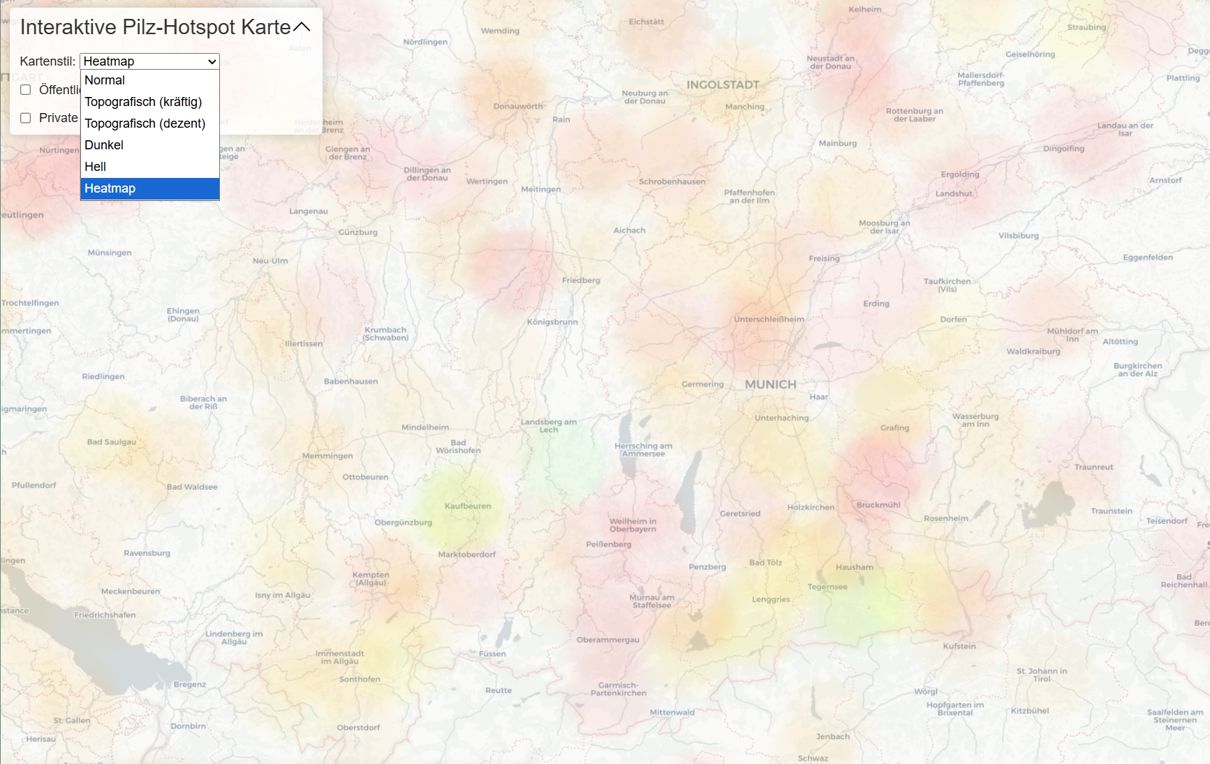 Und nochmal nachgearbeitet. Heute war Bugfixtag. Zudem gibt es jetzt eine 7Tage-Prognose nach den 10 Tagen Wettervorhersage, weil das Pilzwachstum ja immer erst nach dem Regen auftritt. Die Basic Variante hat ja auch 5 Tage Trend nach der "Heute"-Linie. Dazu noch neue Karten mit Topografie oder deutlich vereinfachten Darstellungen in dunkel oder hell. Ortscaches gelöscht, falls jemand Probleme mit den Orten hat. Geocoding deutlich verbessert. Usw etc ![]()