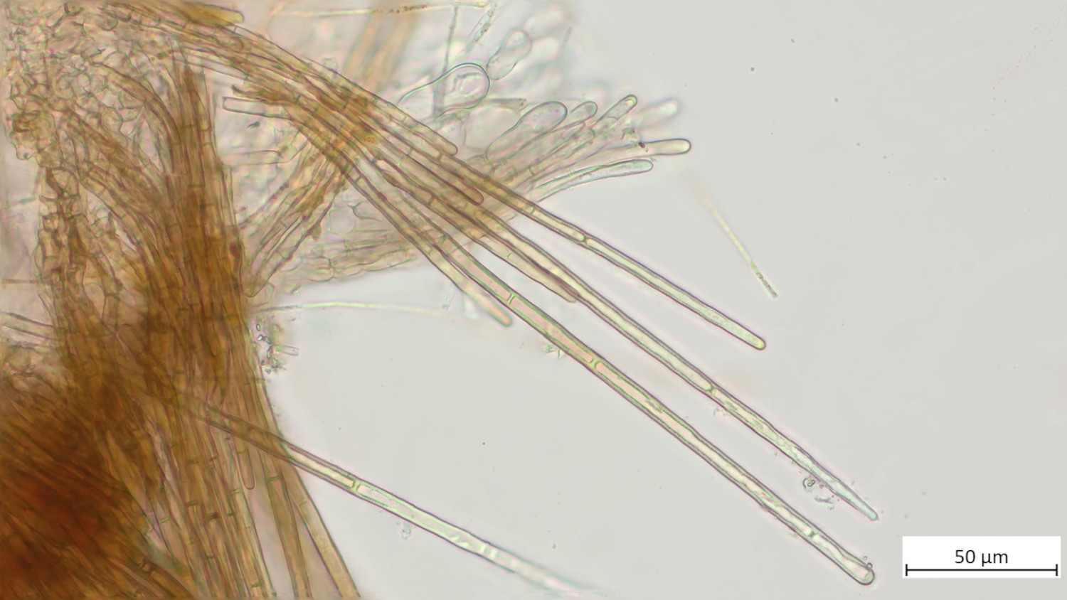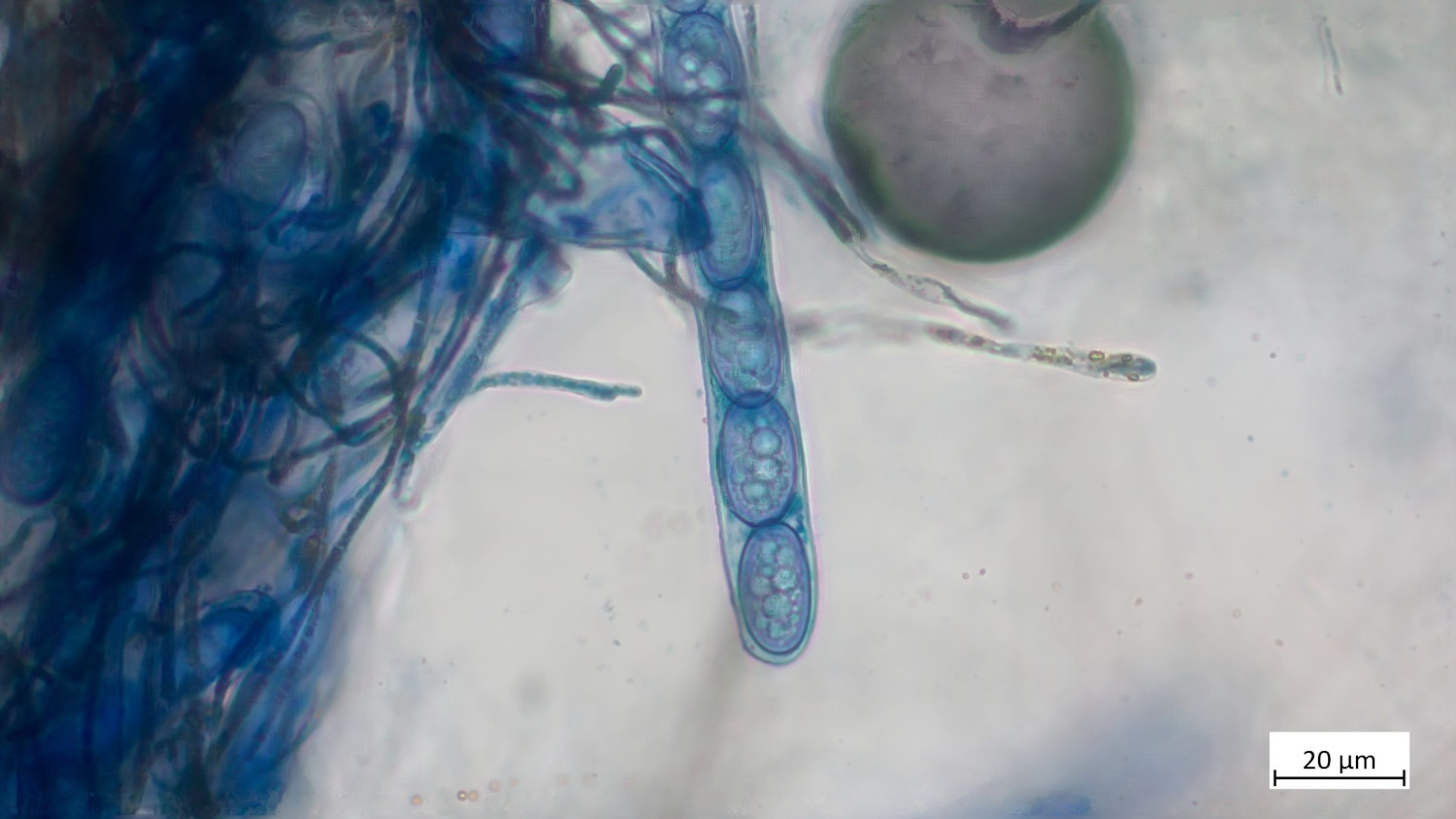 Jedenfalls habe ich den Pilz mit nach Hornberg genommen und ich habe ihn, zusammen mit meiner mikroskopischen Dokumentation Björn gezeigt. Da er auch nicht direkt sagen konnte was es ist, schien es etwas besonderes zu sein. Wenn ich ihn richtig verstanden hatte, nannte er dann zwei mögliche Gattungen und fragte, ob er den Pilz am Abend zur genaueren Untersuchung mitnehmen könne. Natürlich war ich einverstanden und war froh, dass das Geheimnis endlich gelüftet werden konnte.