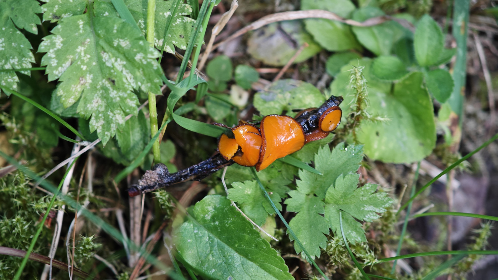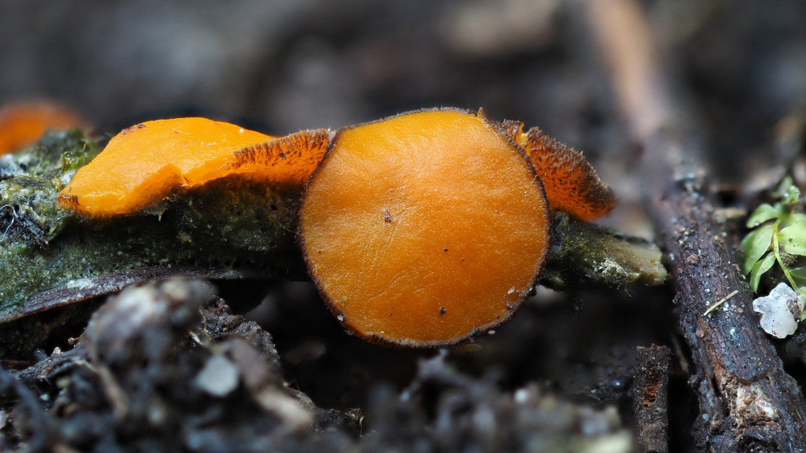 Jedenfalls war ich vor zwei Wochen noch kurz nach Feierabend im Wald und habe eigentlich nicht viel aufregendes gefunden. Als ich gerade durch ein kurzes sumpfiges Gebiet lief, sah ich in einem kleinen Rinnsal einen kleinen Zweig der mit diesen schönen, kleinen, orangen Pilzchen bestückt war. Ich dachte mir nicht viel dabei und nahm ihn mal mit. Mal kurz mit einem Foto bei ein paar Pilzfreunden nachgefragt, ob sich da jemand auskennt und Andy ( CH-Andy ) meinte evtl. Scutellinia scutellata, sehr schön zu miken, aber schwer zu schlüsseln und er sollte recht behalten. Raphael ( Clavaria ) hat mir dann freundlicherweise den Link zum Scutellinia-Schlüssel geschickt. Die Sporen waren glatt und irgendwie schienen sie gut zu Scutellinia setosa zu passen, allerdings waren sie dafür etwas zu lang. Zudem hat mich Raphael auch darauf hingewiesen, dass dafür wohl die Haare zu kurz seien und gesagt, ich solle den Pilz doch mit nach Hornberg nehmen (wo am 18. August mein Kurs begann). Björn Wergen kennt sich bei Ascomyceten unglaublich gut aus, wenn das also jemand bestimmen konnte, dann er.
