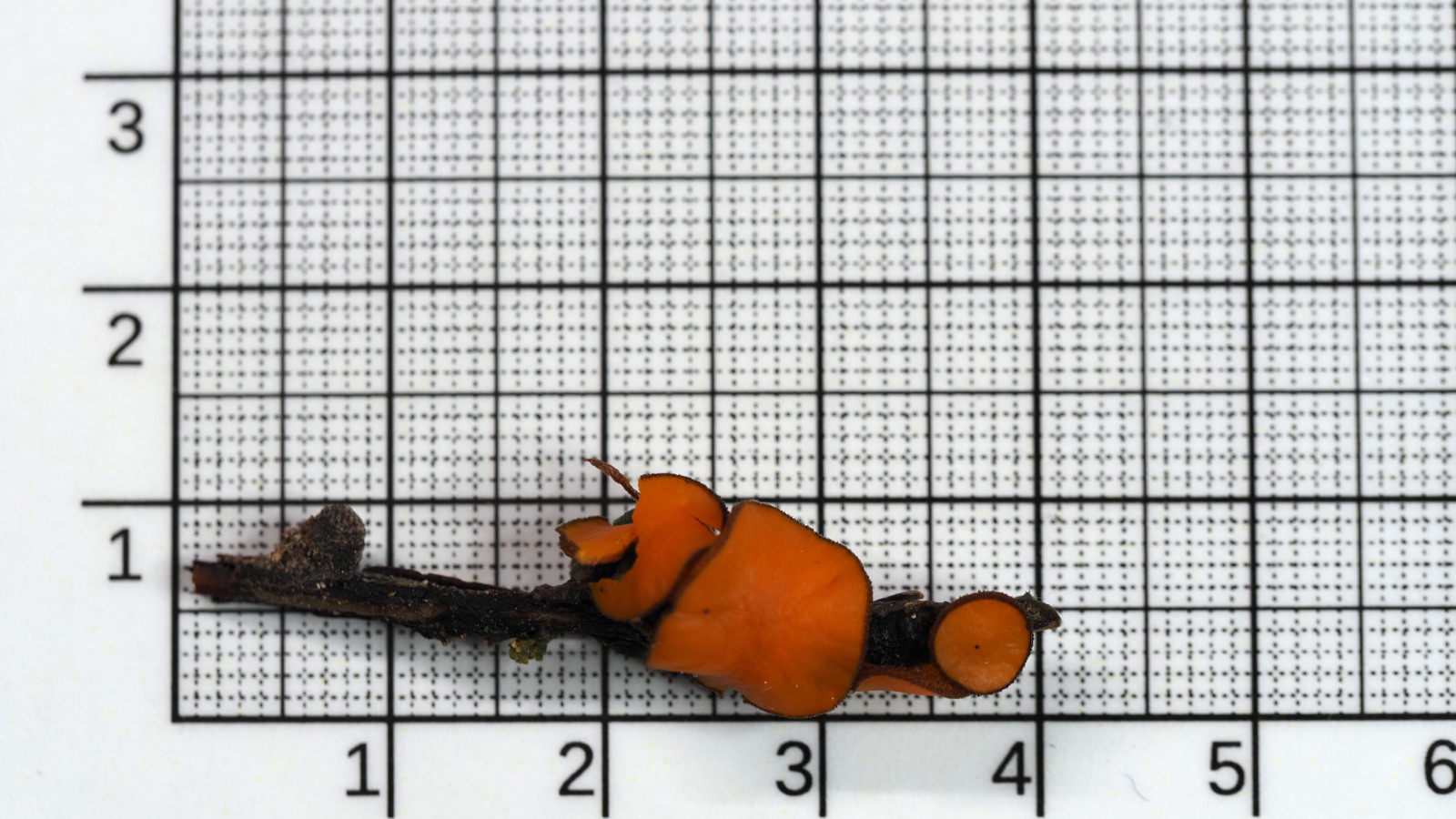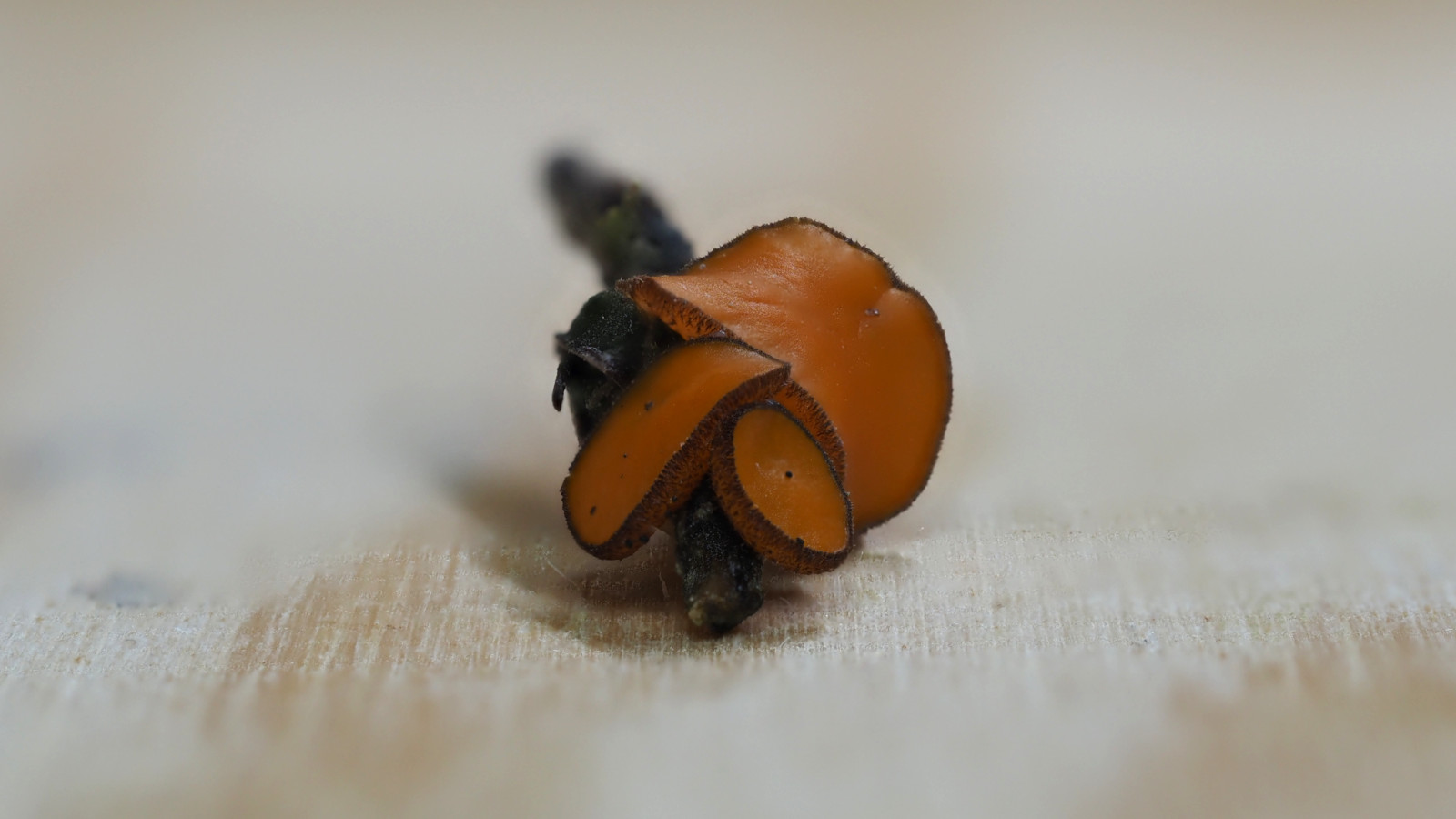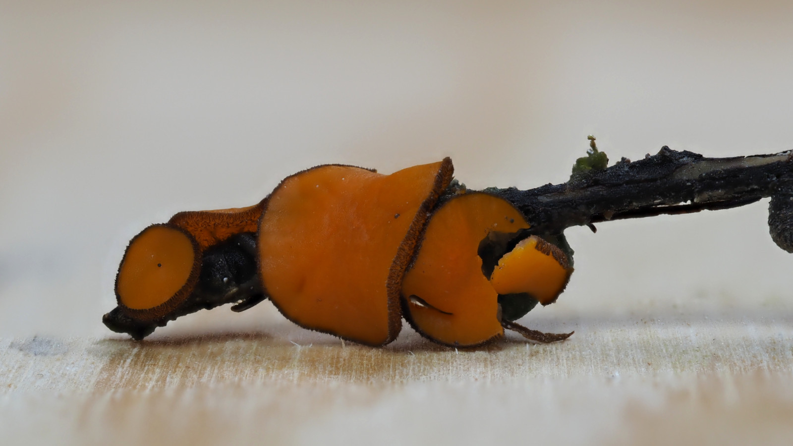 Am nächsten Morgen wollte ich gespannt wissen welche Art es ist und Björn sagte mir, dass es sich um Spaniodiscus fuckelii auf einem Lärchenzweig handelt. In der Gattung Spaniodiscus gibt es nur eine Art und das ist diese. Zudem bedeutet der Gattungsname so viel wie «seltene Scheibe» und das scheint sie auch zu sein. Laut dem Artikel von Researchgate sollen Funde sehr selten und bisher (April 2022) nur aus Österreich, Frankreich und der Schweiz bekannt sein.