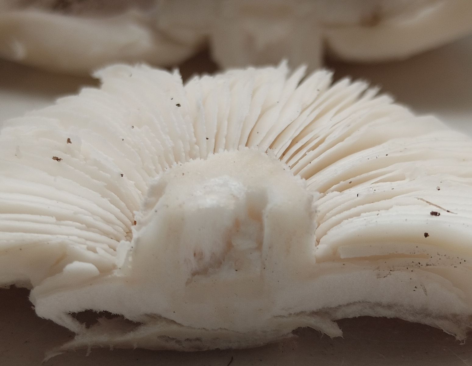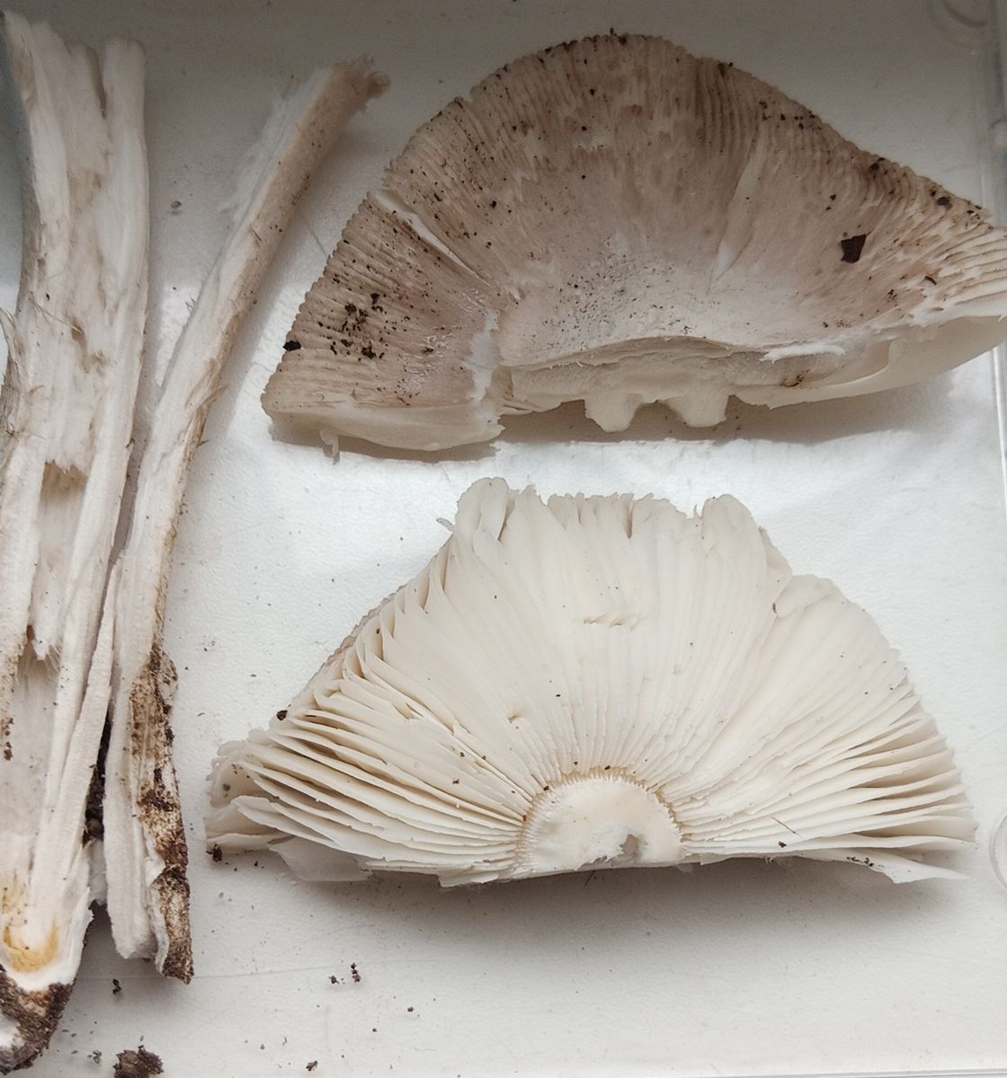 Die Hutfarbe ist ein Problem, ganz schwach bräunlich, am Fundort hatte man den Eindruck, es ist etwas grau dabei.
