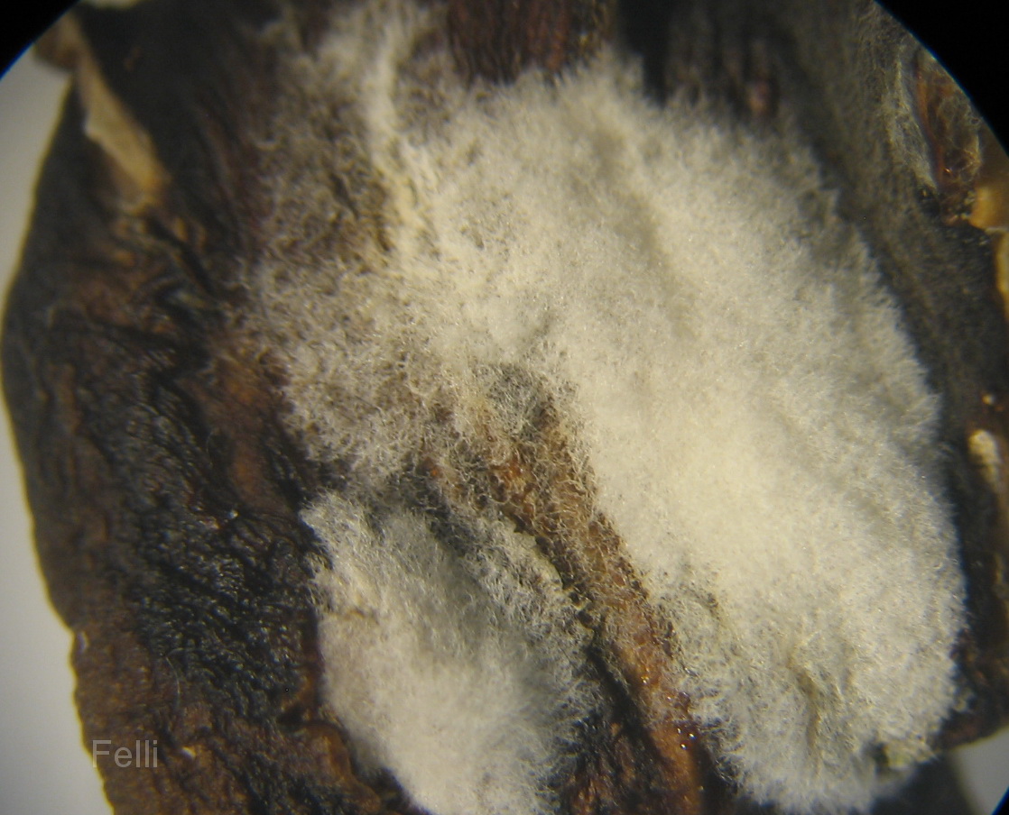 auf einem liegen gebliebenen Stück einer Entoloma bildete sich ein Schimmel auf der Hutoberfläche.