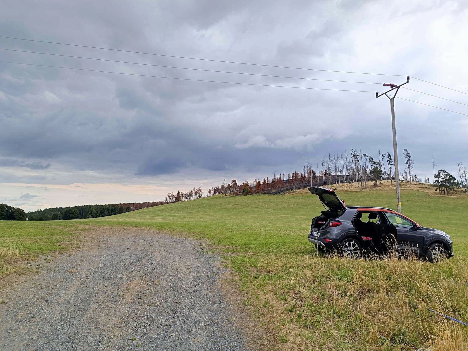Am 10. Juli brannte dort eine Waldfläche von rund 30 Hektar. In den Medien war zwar von 250 Hektar die Rede, doch das ist eindeutig falsch. Dabei handelte es sich größtenteils um bereits gerodete Stellen, die mit Gras bewachsen waren, oder um komplett abgestorbenen, noch stehenden Fichtenbestand. In der Umgebung sieht man etliche identische Flächen: gerodete Wälder oder abgestorbene, noch stehende Fichten, am Boden jede Menge Astwerk – alles überwuchert von hohem, mittlerweile abgestorbenem Gras. Wenn hier ein Funken fällt, brennt das im wahrsten Sinne des Wortes wie Zunder.