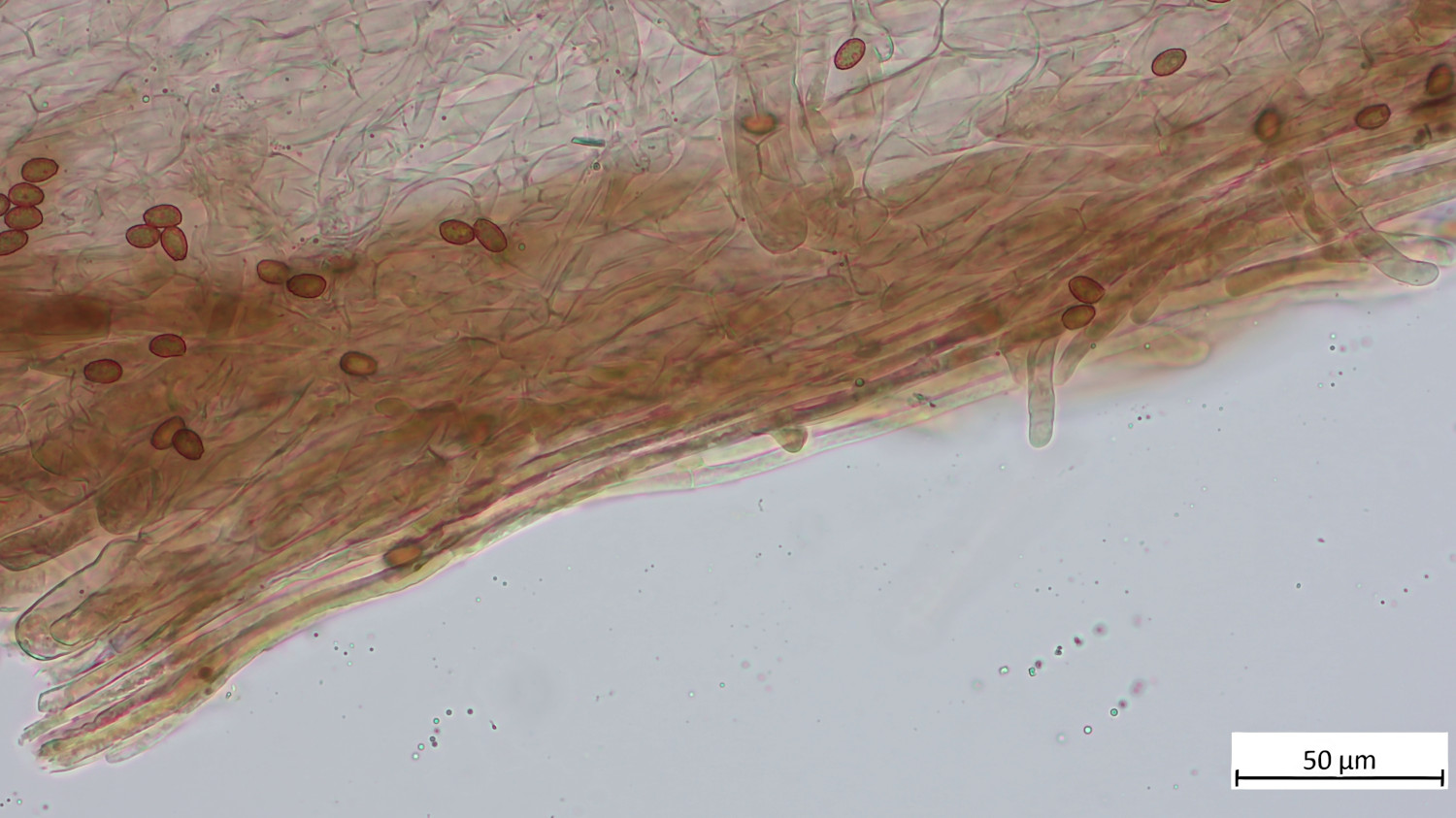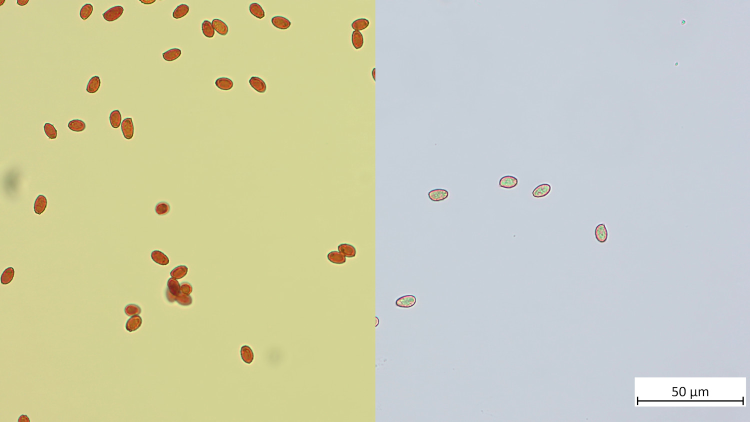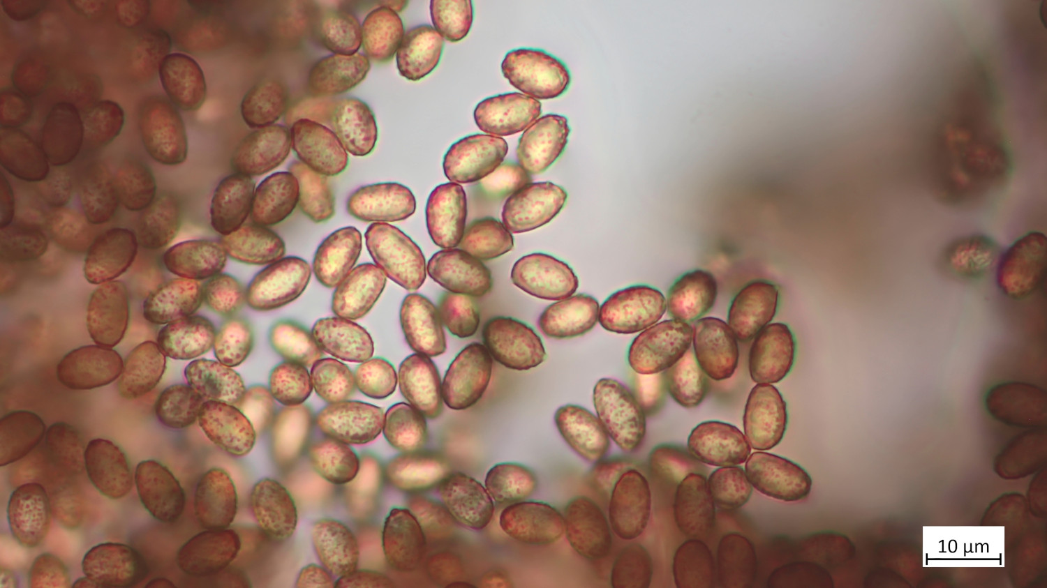 Sporen (21 gemessen): 9.5 µm (8.8–10.0 µm) × 5.8 µm (5.4–6.3 µm), Q = 1.63 (1.52–1.75)