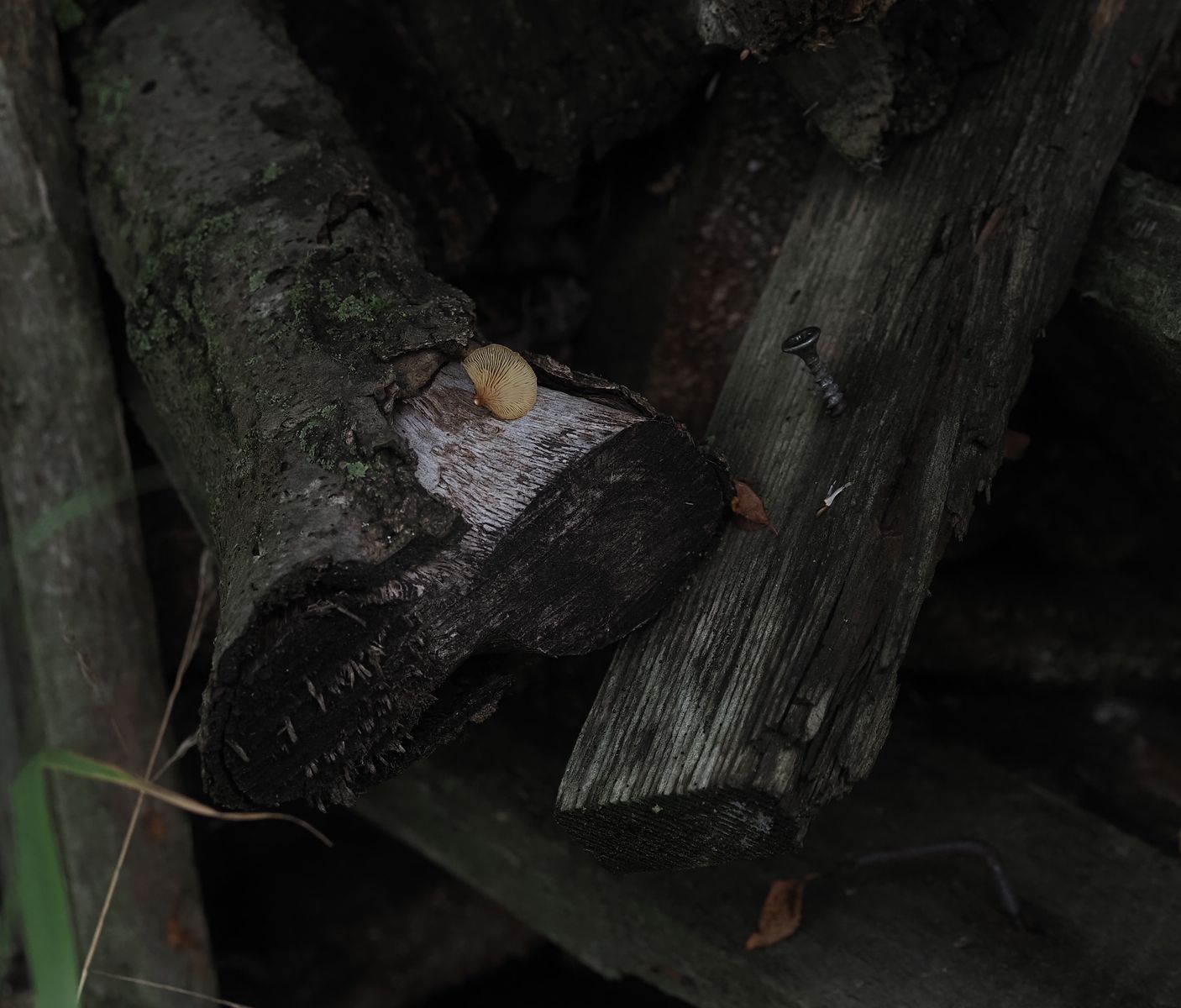 Heute fand ich auf dem Grundstück aber dieses Krüppelfüßchen am Feuerholz-Lagerstapel.