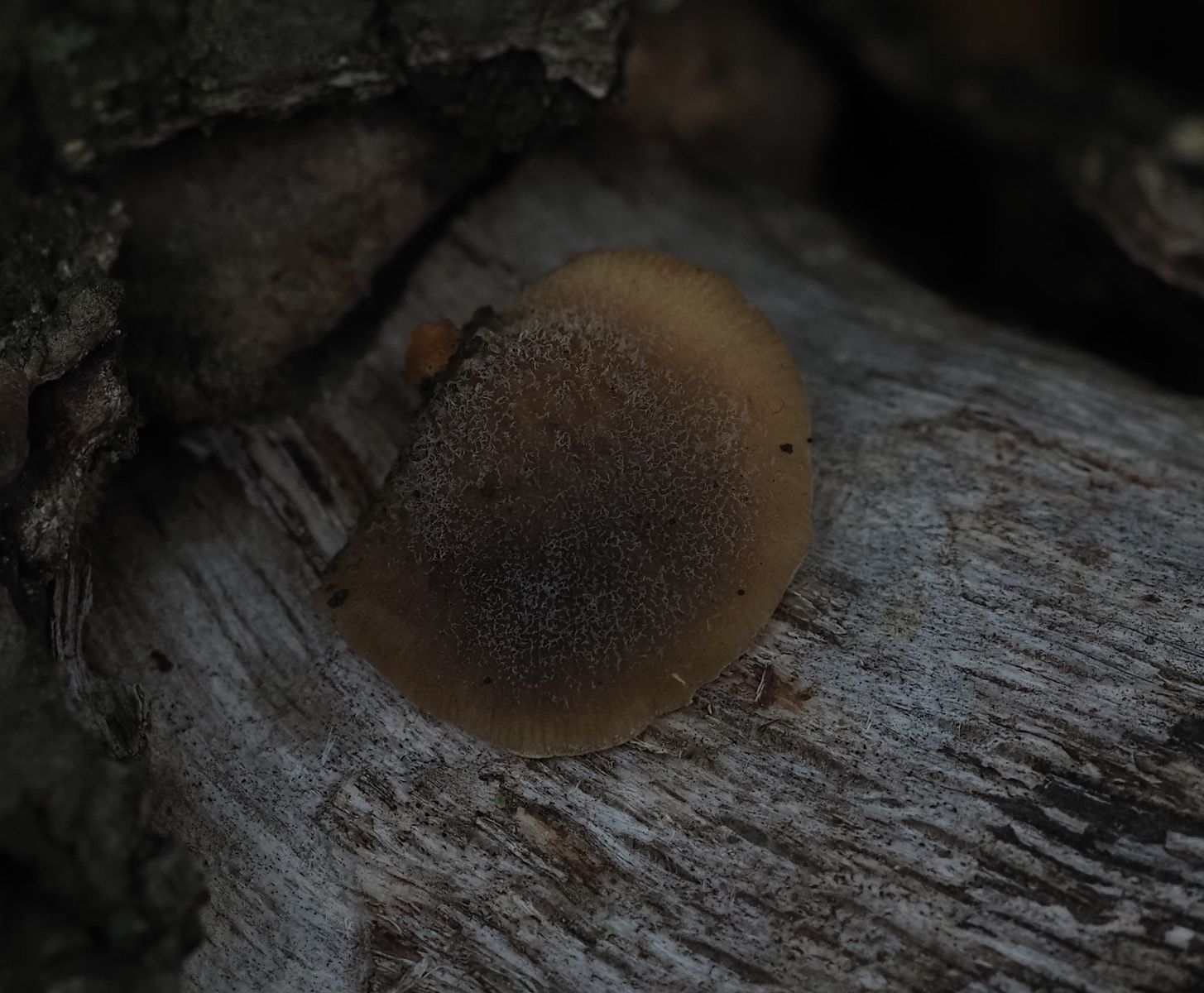 Mikro habe ich nicht dabei, aber könnte das Crepidotus calolepis sein? Wäre dann doch noch ein Erstfund immerhin (neben dem Mutterkorn was ich gestern finden konnte).