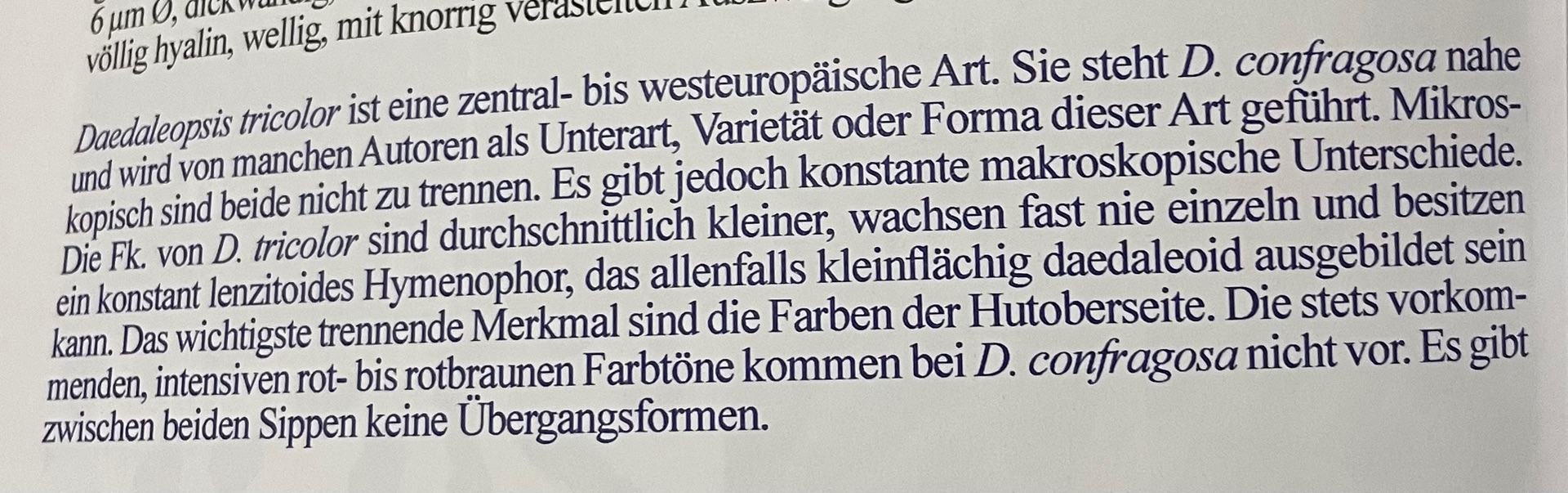 Bei Pilze Deutschland gibt es nur noch Daedaleopsis confragosa und Daedaleopsis confragosa var. tricolor. Wenn ich alles richtig sehe, gibt es Daedaleopsis tricolor nicht mehr als eigene Art.
